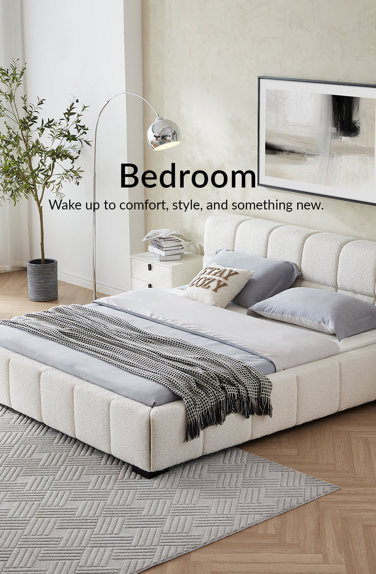 Cushy Boucle Fabric Bed-White Cushy Boucle Fabric Bed-White