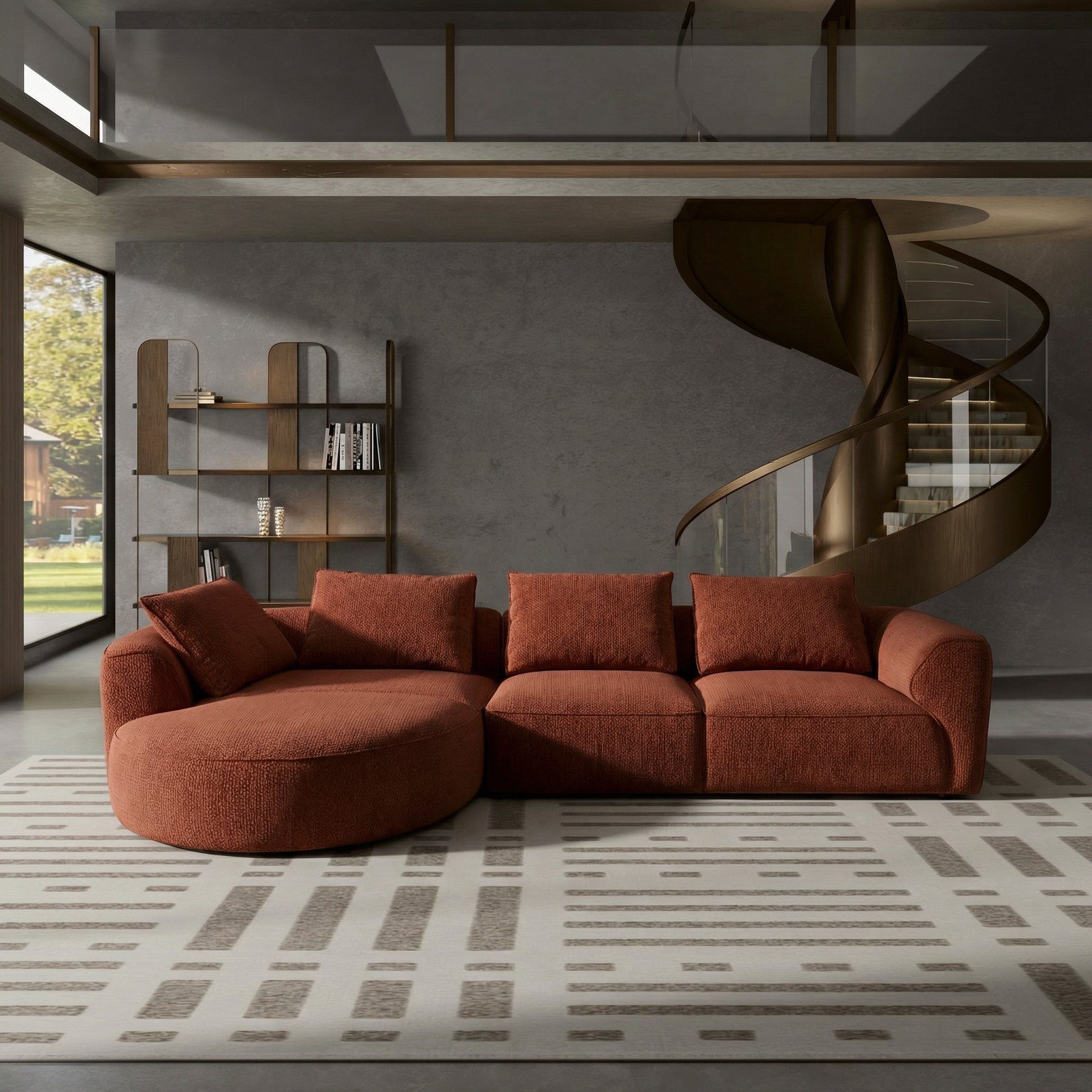 Terracotta Curved Sectional Sofa