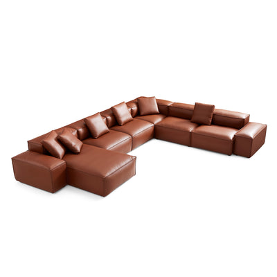 The Cube Modular Black Genuine Leather U-Shaped Sectional combines contemporary design with lasting comfort. Upholstered in genuine leather, this spacious sectional features a versatile U-shaped layout, deep seating, and clean lines that bring both style and functionality to your living room. Perfect for gatherings or everyday lounging.