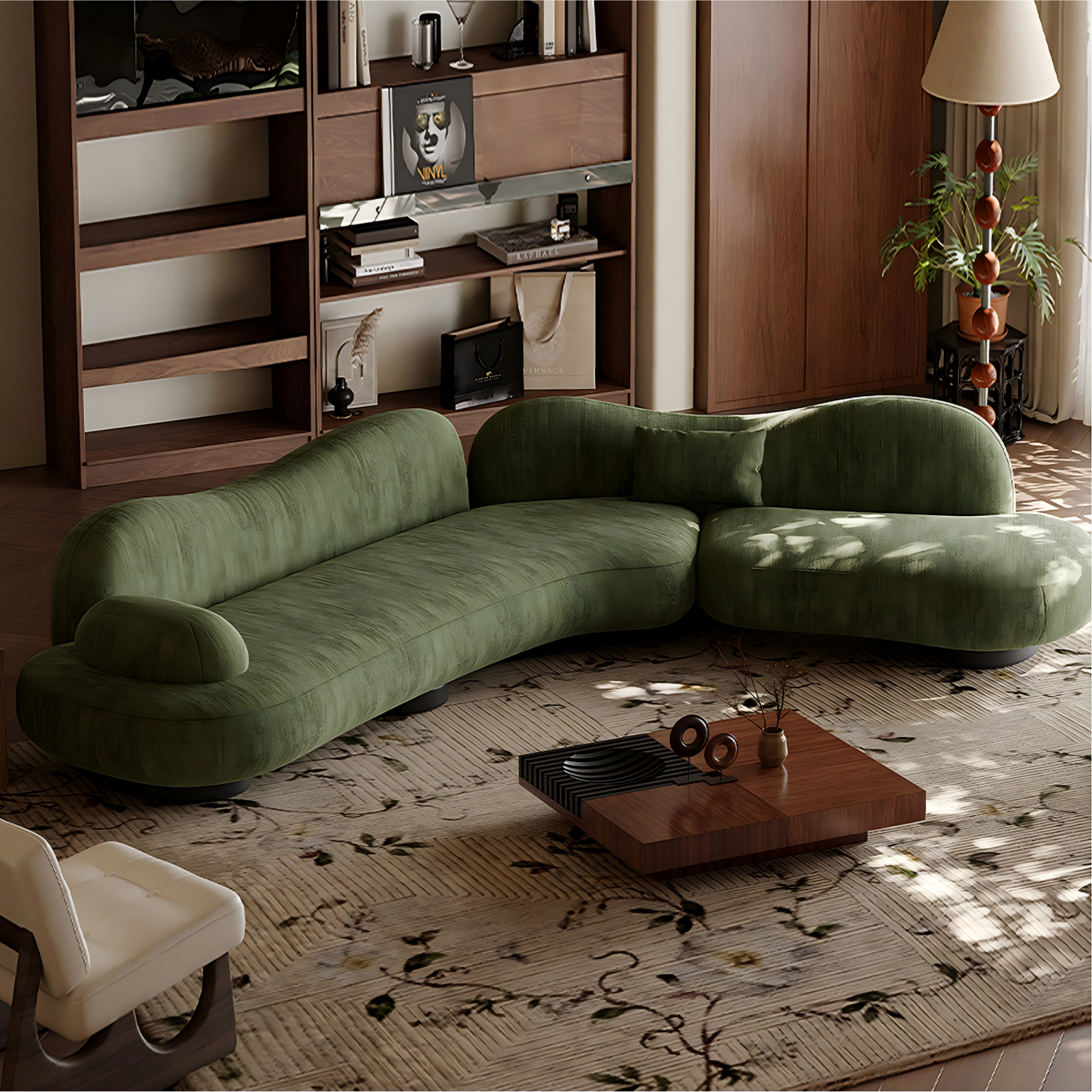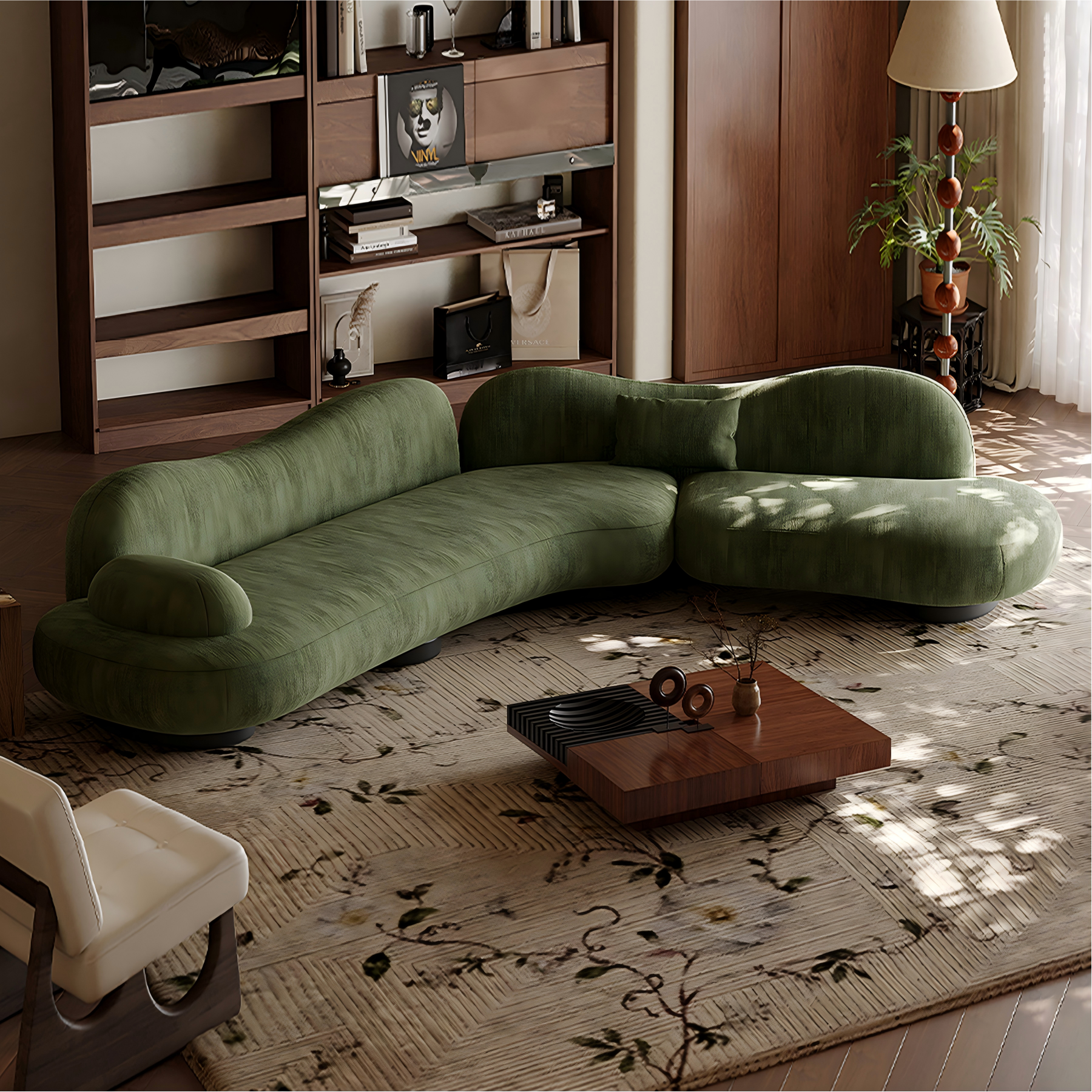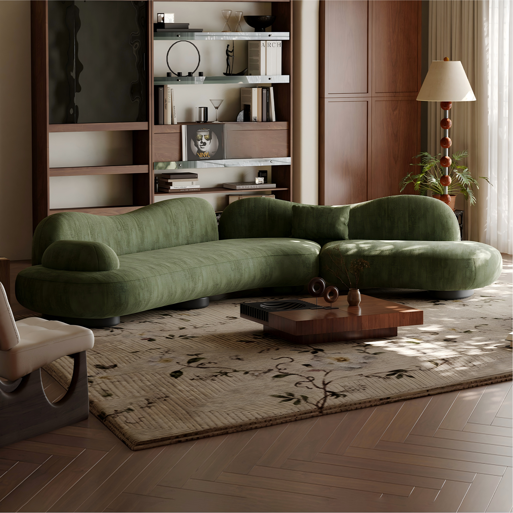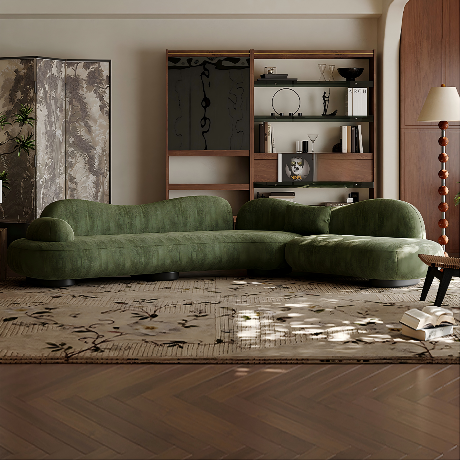 Inspired by the serenity of open meadows, the Meadow Curved Sectional Sofa blends organic shapes with modern elegance. Its gentle curves and lush green upholstery evoke a sense of calm and connection to nature, creating a soft statement piece for any living space. Designed for both comfort and style, it invites you to unwind, socialize, or simply enjoy a moment of stillness. The low-profile silhouette and premium texture make it a perfect harmony of contemporary design and cozy sophistication.