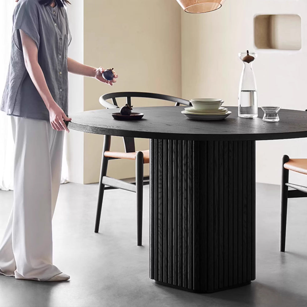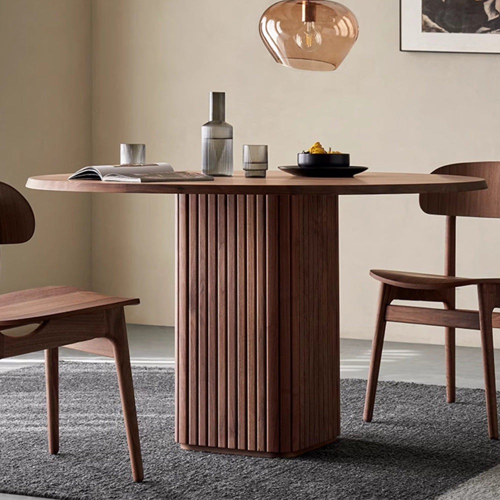 The Chelsea Round Dining Table is a modern solid wood dining table inspired by classical architecture and refined craftsmanship. Featuring a sculptural fluted pedestal base and a warm walnut finish, it offers exceptional stability, generous legroom, and timeless style. Perfect for modern, mid-century, and minimalist interiors, Chelsea creates an inviting centerpiece for everyday dining and gatherings.