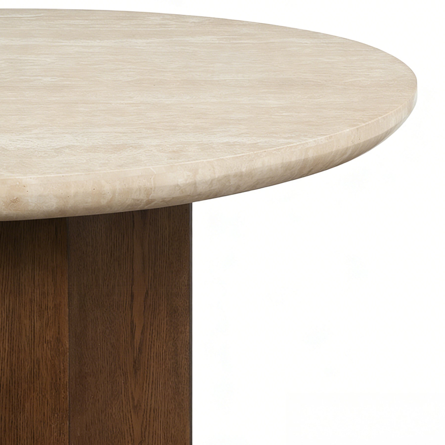 Crafted from durable stone and solid wood, the Vale Dining Table offers lasting stability and everyday functionality. The stone top provides a resilient, easy-to-clean surface, while the wood base adds warmth and strength. Together, these natural materials create a dining table that feels solid, comfortable, and timeless in any space.