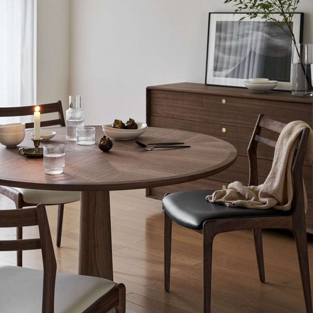 The round tabletop eliminates sharp corners and keeps everyone an equal distance from the center, making conversations feel more natural and inclusive. Compared to rectangular tables, a round dining table helps everyone stay connected—no “head of the table,” just easy eye contact all around.