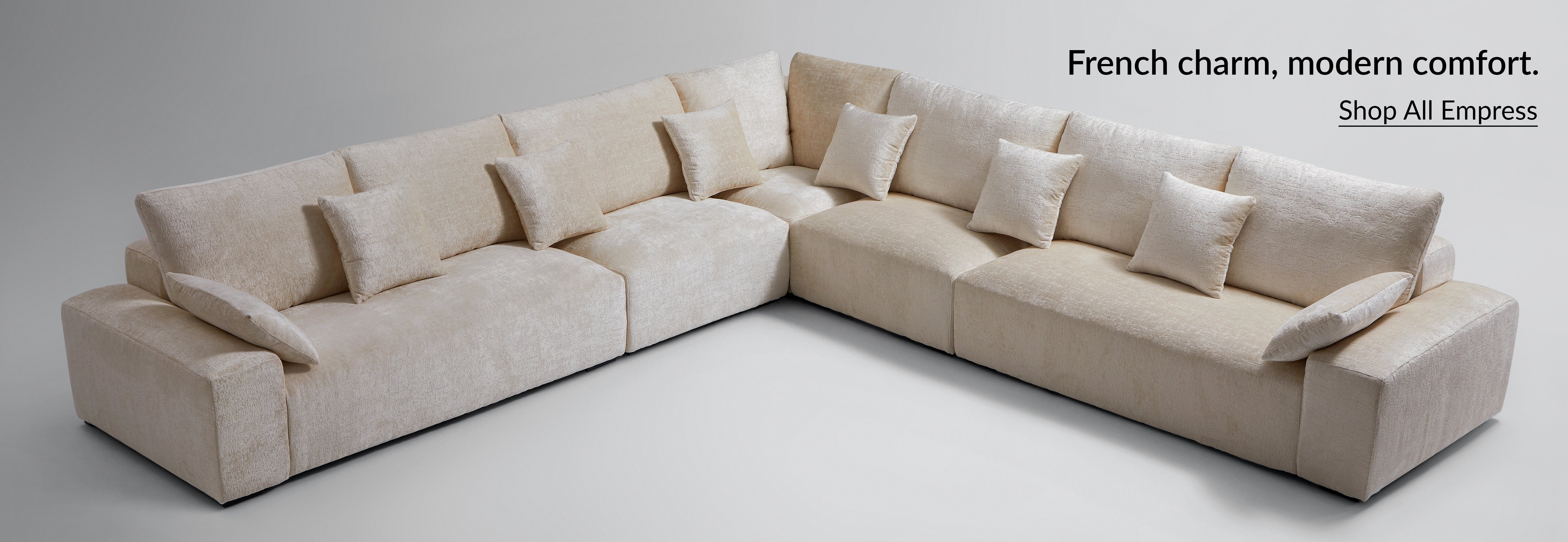 Yes, the Empress Collection features a modular design, allowing each sofa piece to be configured in various layouts to suit your unique space and style preferences. You can easily customize the arrangement to create the perfect seating solution for your home.