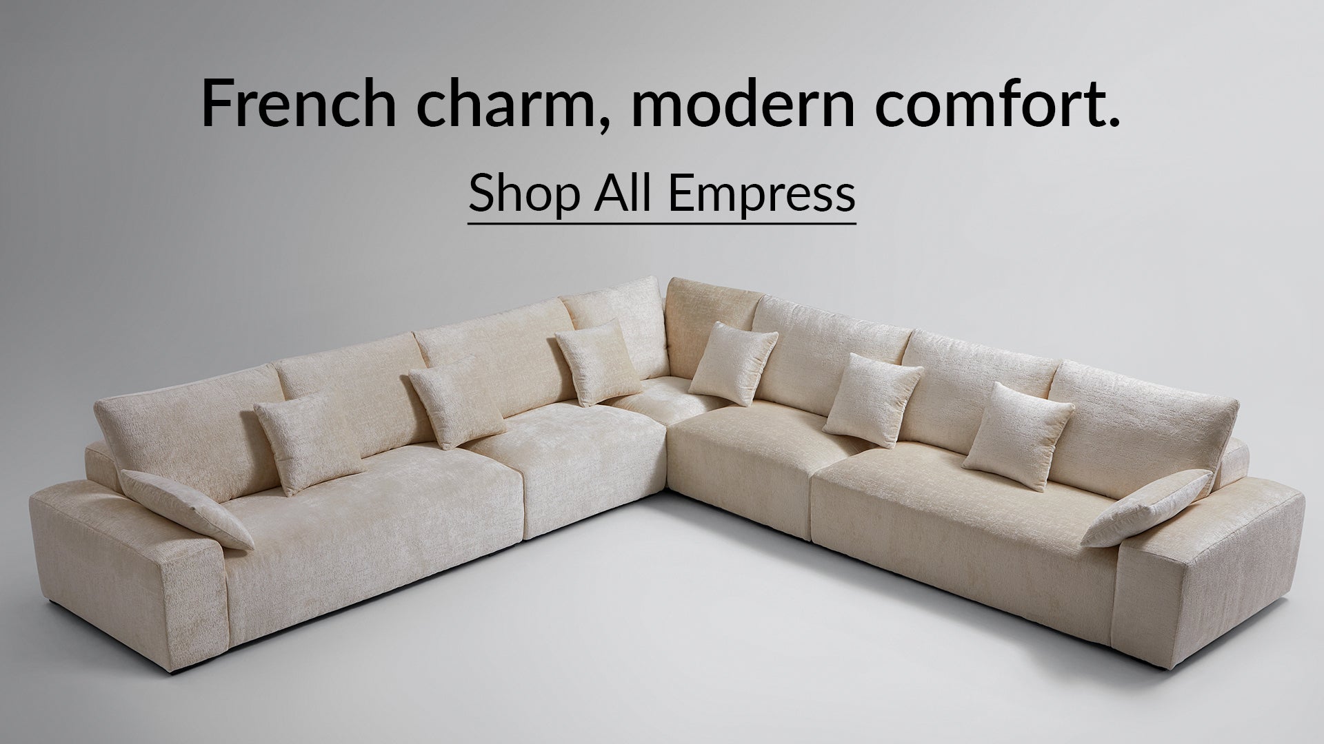 The Empress Collection features a refined silhouette that blends modern simplicity with classic elegance. Upholstered in soft, durable chenille velvet, it’s both luxurious and long-lasting. A favorite among customers and design influencers, it perfectly showcases the appeal of chenille fabric for sofa use.