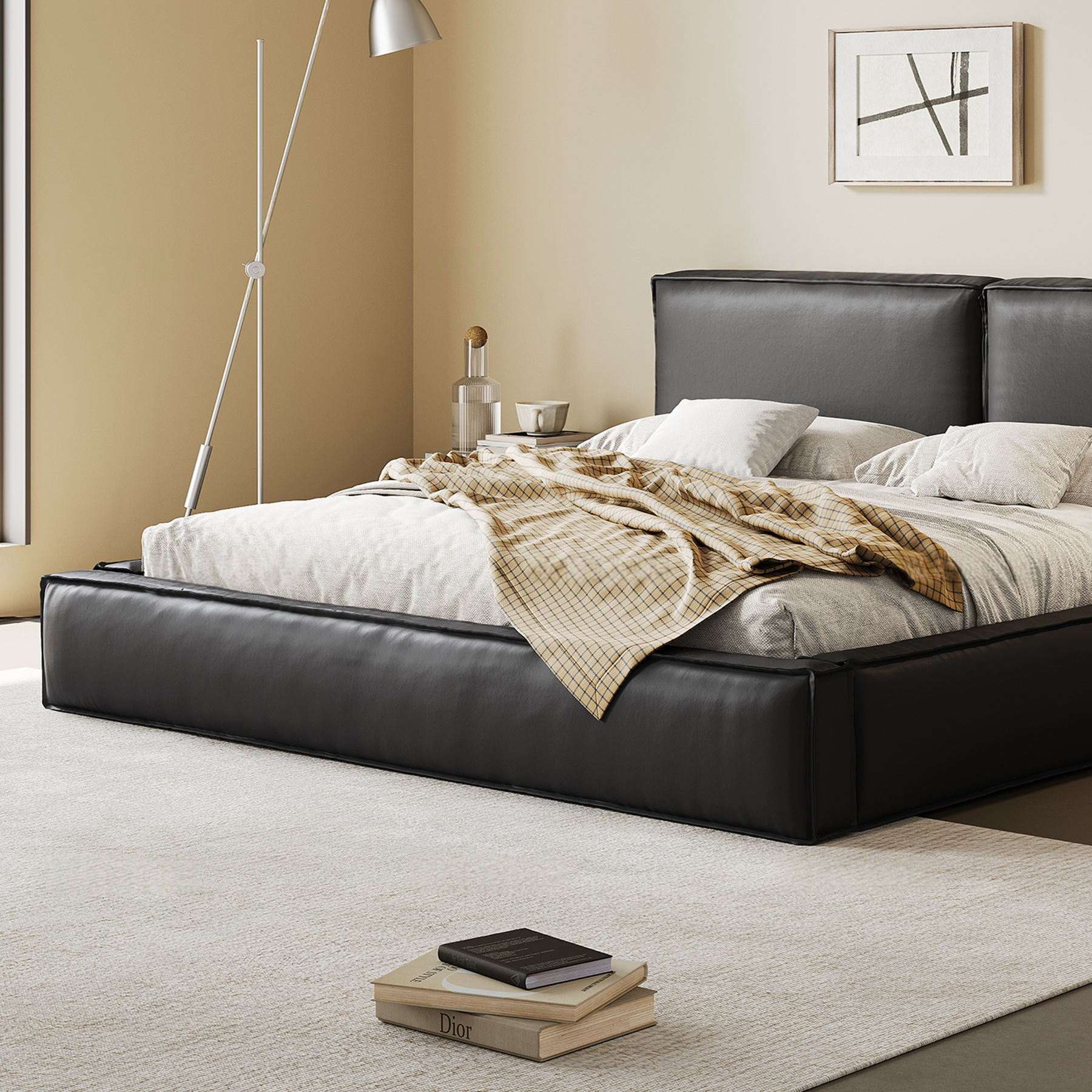 The BlockSense Modern Leather Bed combines minimalist Italian styling with a soft, cloud-like upholstered headboard and durable vegan leather finish. Built with a premium solid wood frame, secure inlaid mattress design, and sturdy square wood legs, it offers the perfect balance of comfort, support, and long-term durability. Ideal for modern bedrooms seeking a sleek, stable, and comfortable upholstered bed frame.