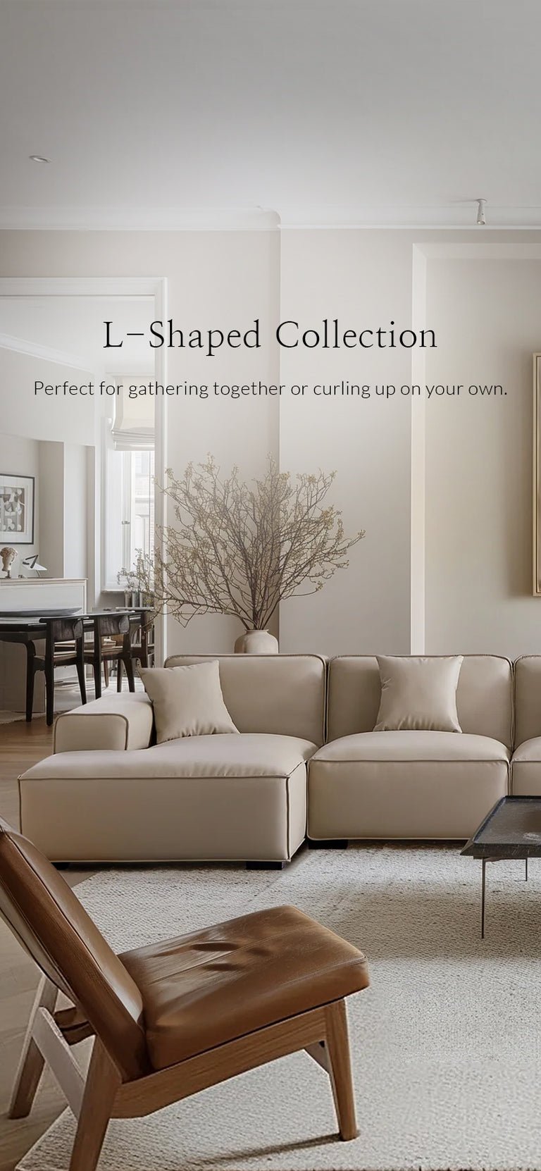 Flex Modular Beige Genuine Leather Sectional-Beige