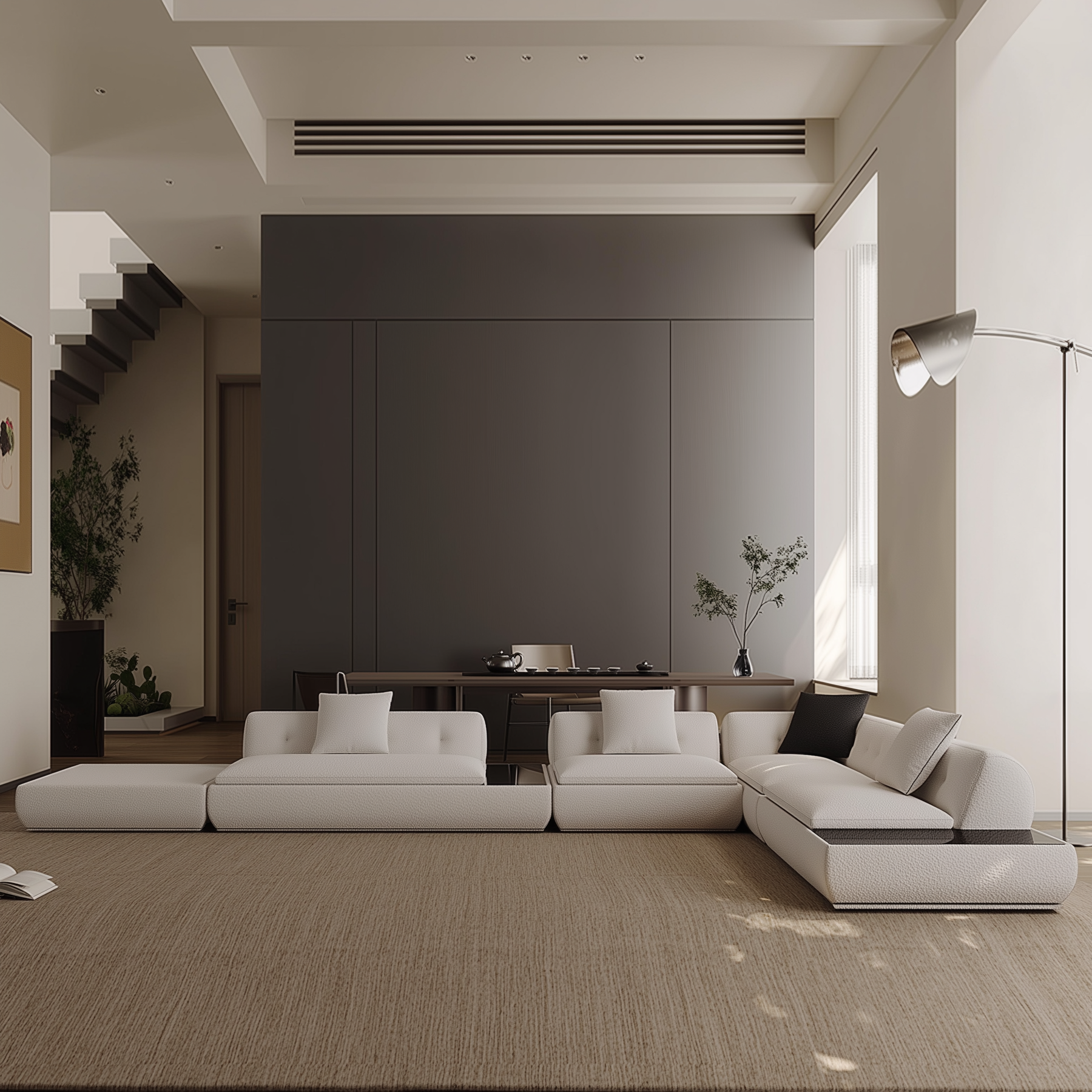 Silver Moon Boucle L-Shaped Sectional Sofa