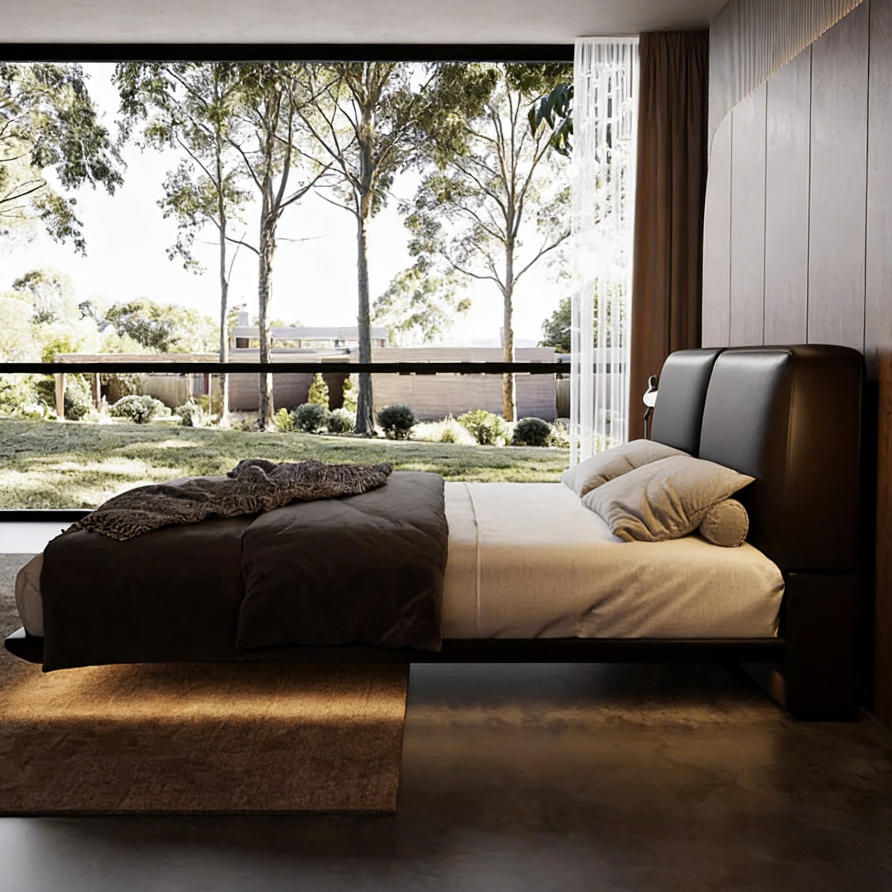 The Domus Floating Bed is built with a solid, low-profile platform that offers reliable support and long-term stability. Its streamlined construction keeps the overall look clean, modern, and grounded.
