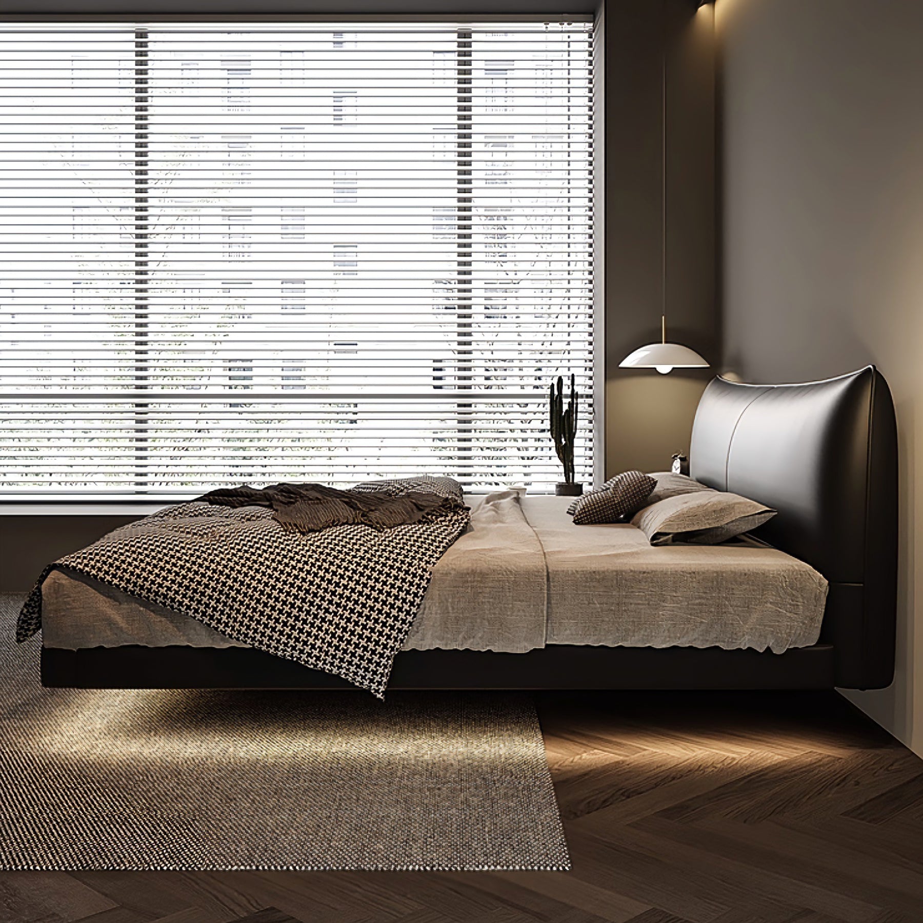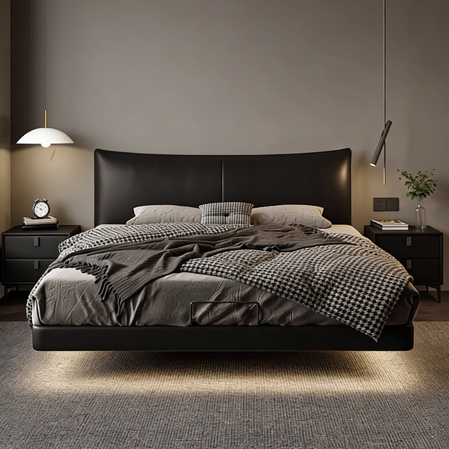 The Isamari Leather Floating Bed brings modern elegance to the bedroom through its floating-inspired platform design and softly padded headboard. Wrapped in premium vegan leather, this modern bed frame balances visual lightness with everyday comfort. The low-profile platform construction creates a sleek foundation for your mattress, while the minimalist silhouette complements a wide range of contemporary interiors.