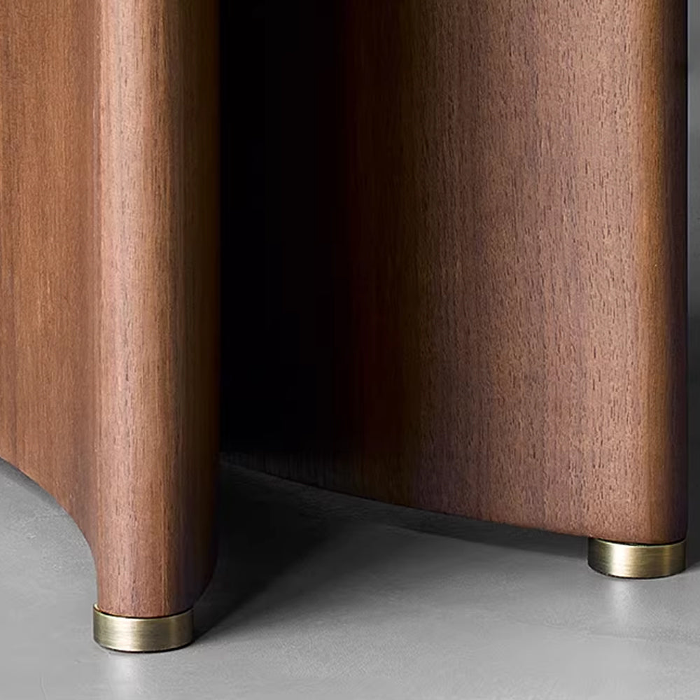 The Erie Rectangular Dining Table blends modern craftsmanship with sculptural design. Made from solid FAS black walnut, it features a spacious tabletop, softly rounded edges, and a distinctive half-moon base for both stability and visual impact. Antique bronze details add a refined finishing touch, making Erie a timeless centerpiece for contemporary and mid-century modern dining rooms.