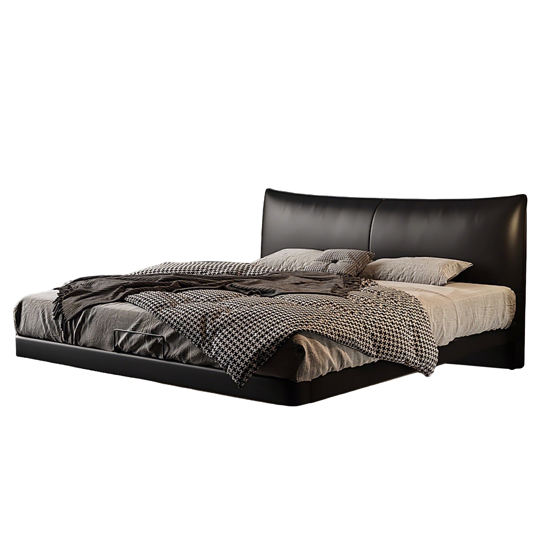 The Isamari Leather Floating Bed brings modern elegance to the bedroom through its floating-inspired platform design and softly padded headboard. Wrapped in premium vegan leather, this modern bed frame balances visual lightness with everyday comfort. The low-profile platform construction creates a sleek foundation for your mattress, while the minimalist silhouette complements a wide range of contemporary interiors.