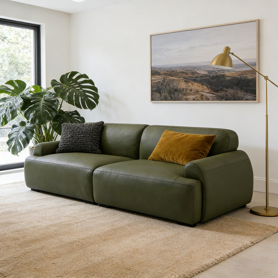 Meet the Brenley Sofa – a modern twist on retro elegance. This sleek, straight-back leather sofa combines mid-century charm with contemporary style, featuring a rich olive/black color palette and premium genuine leather for a luxurious yet durable finish. Perfect for modern living spaces, the Brenley adds a touch of vintage sophistication while keeping your home effortlessly chic. Its clean lines and timeless design make it a versatile centerpiece for any room. Whether you're relaxing or entertaining, the Brenley Sofa brings together comfort, quality, and style in one stunning package.