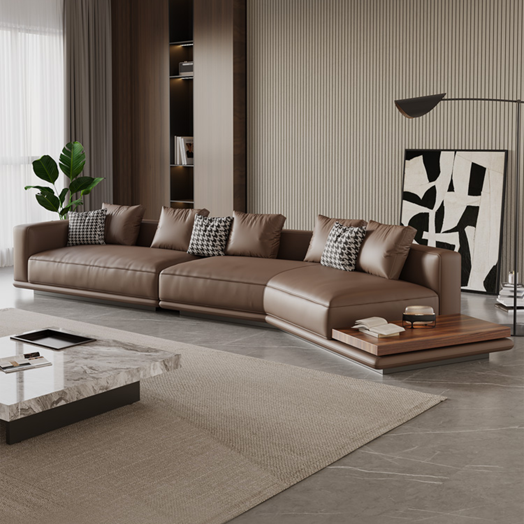 Merritt Leather Curved Sectional Sofa with End Table