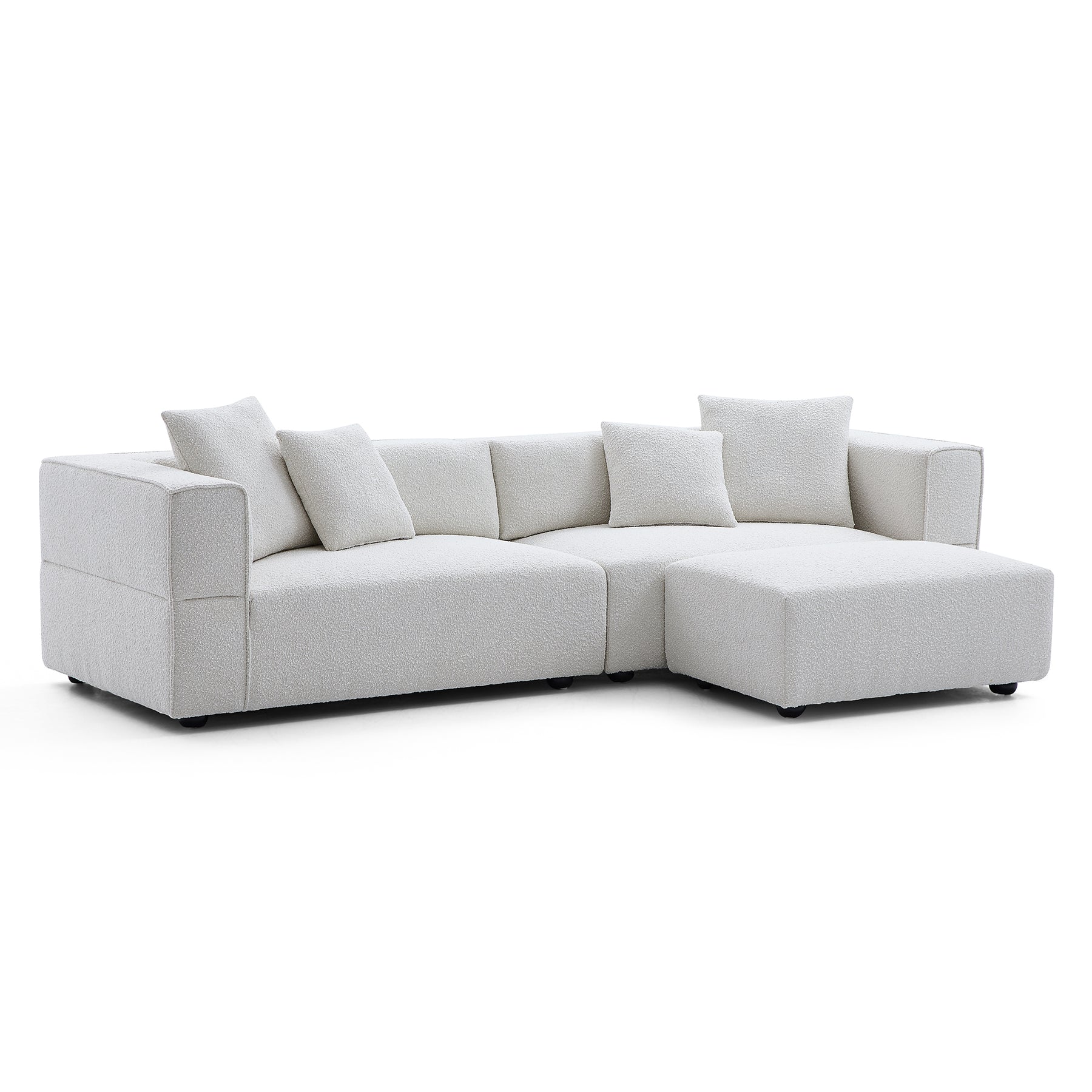 I love the cushions on this sofa. The modern design looks sleek, and the ottoman is great for extra seating.