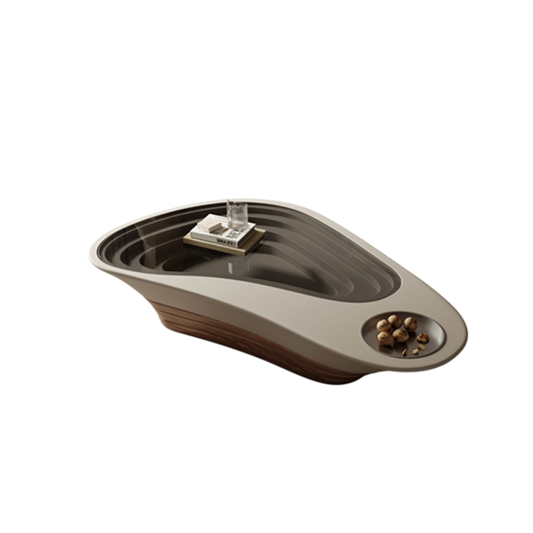 The Abyss Flow Coffee Table blends modern art with practical living. Featuring a tempered gray glass top, a dynamic swirl silhouette, and a walnut-veneer base with natural grain, it brings visual depth and sculptural elegance to any home. A recessed hollow shelf provides convenient daily storage, making this design both stunning and functional. Perfect for modern living rooms, apartments, and designer-inspired spaces.