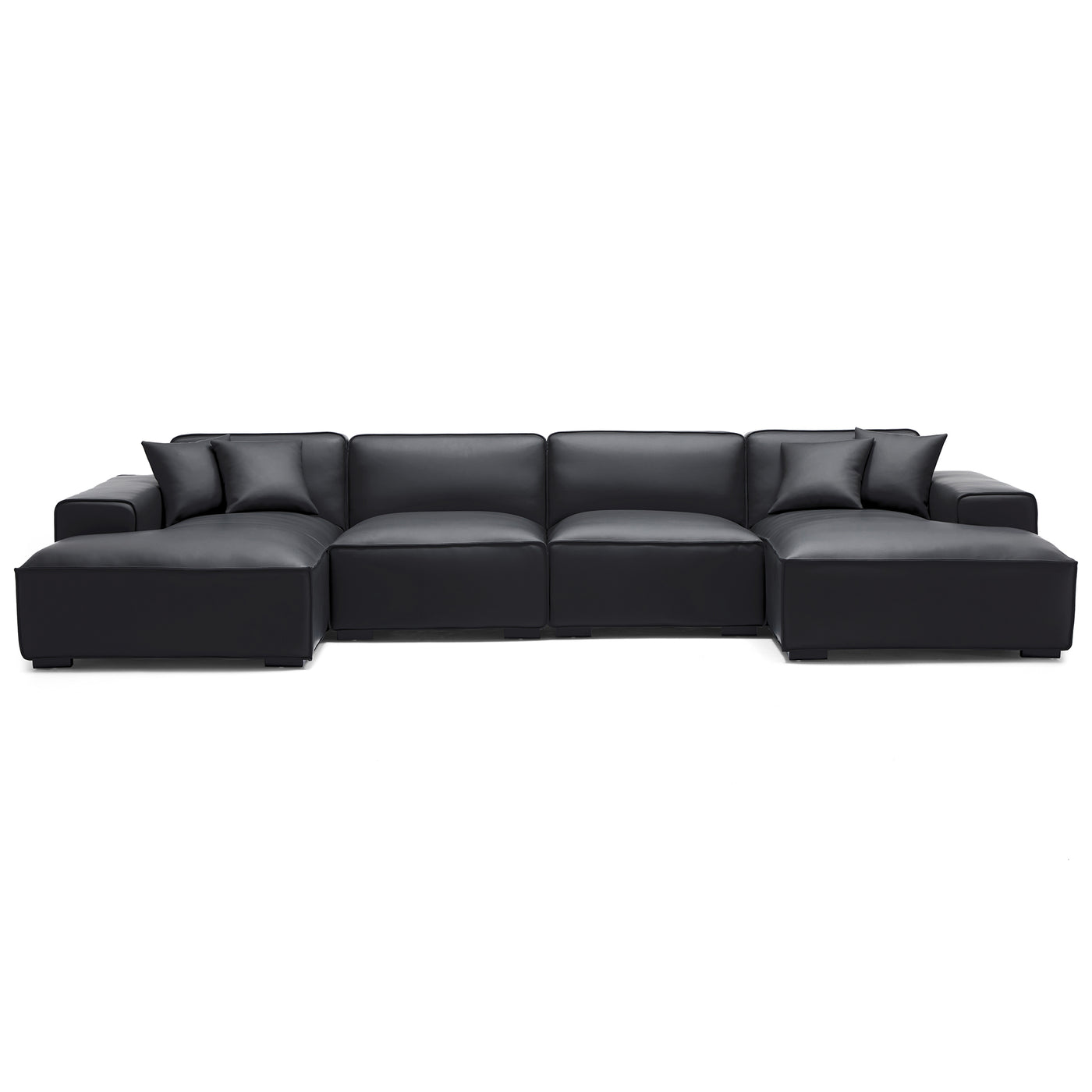 Domus Modular Beige Leather Double Chaise Sectional-Black-192.9″