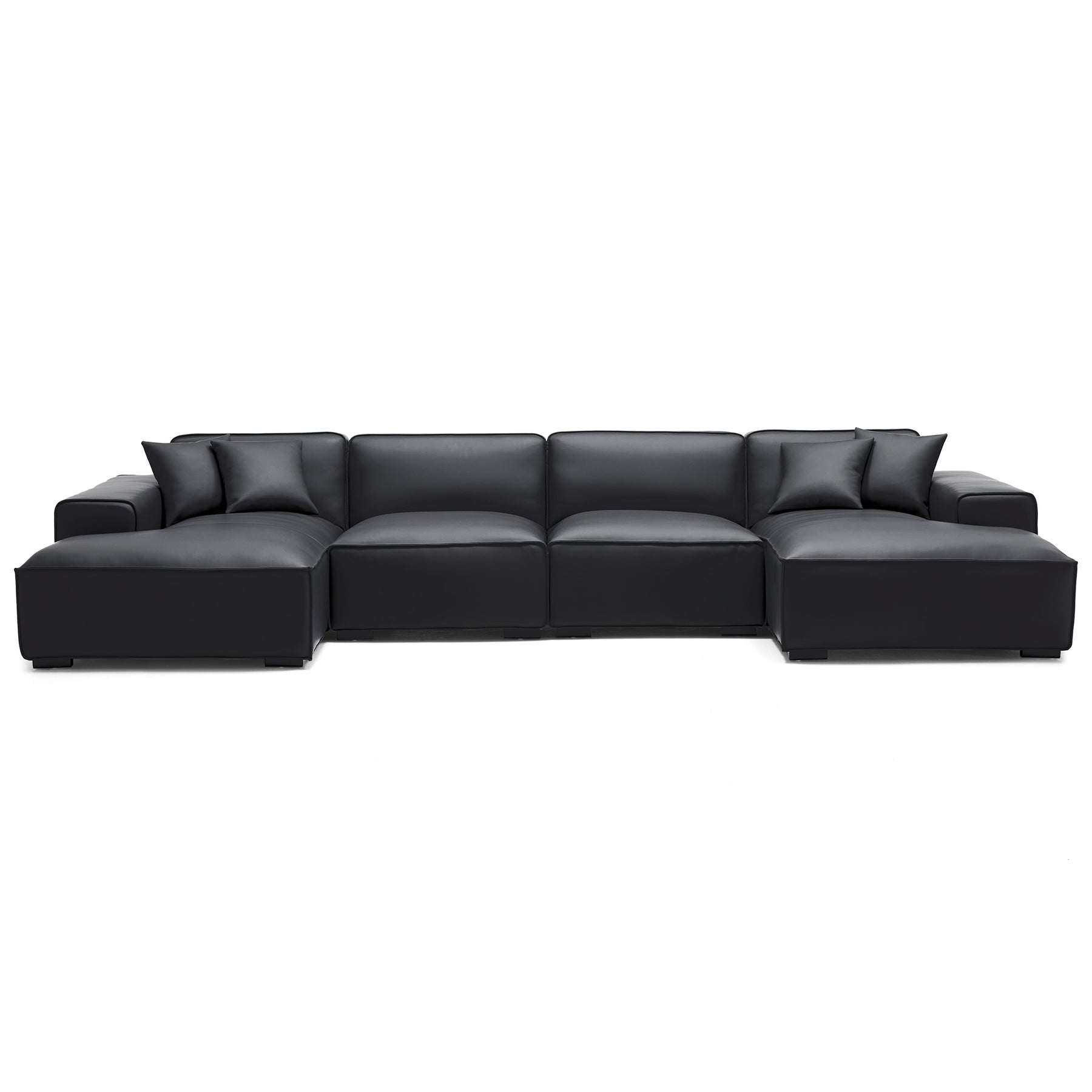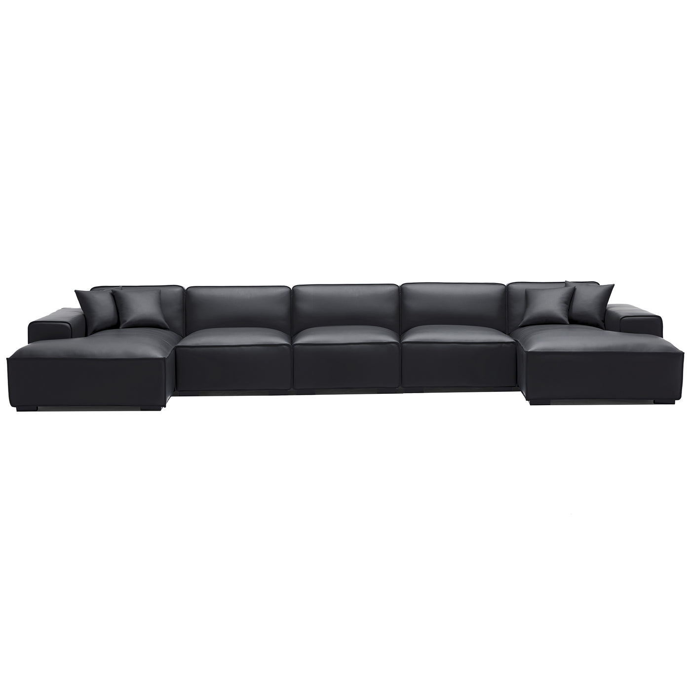 Domus Modular Beige Leather Double Chaise Sectional-Black