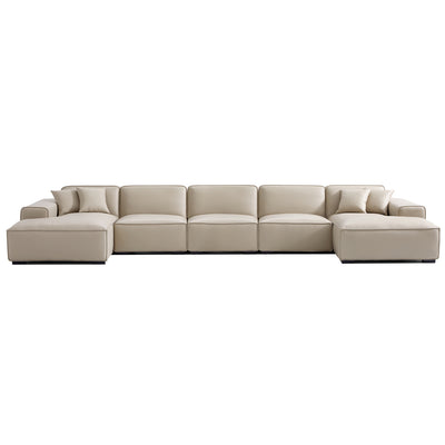 Domus Modular Beige Leather Double Chaise Sectional-Beige