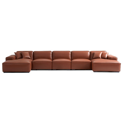 Domus Modular Brown Leather Double Chaise Sectional-Brown