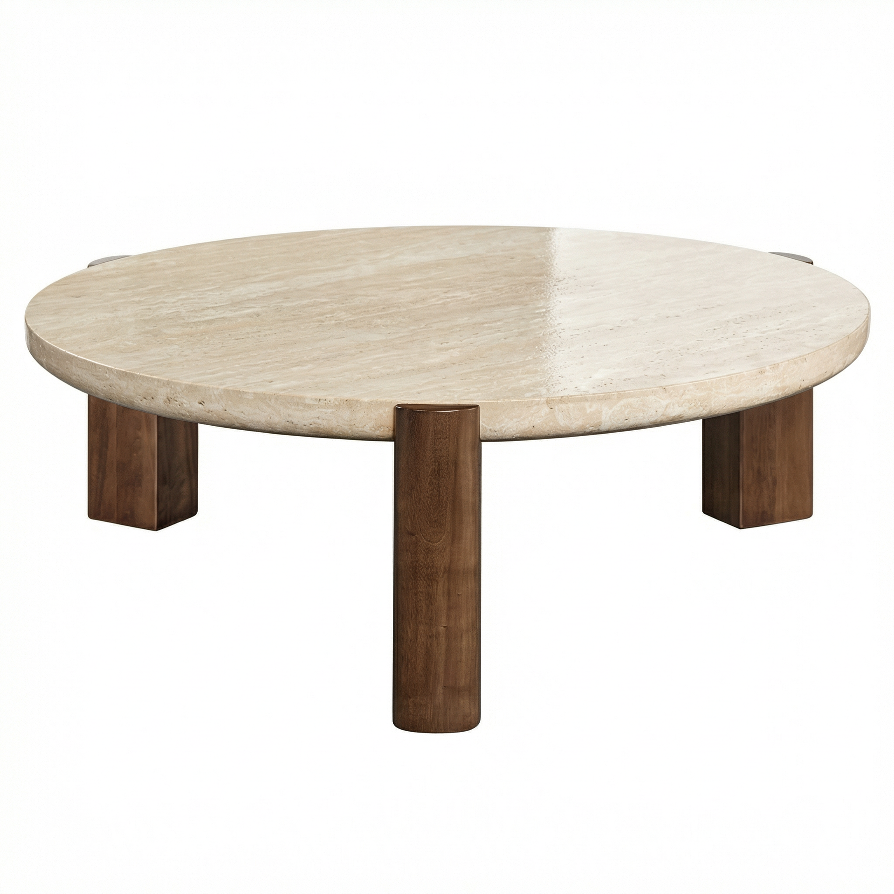 Supported by a dark oak wood base, the table offers visual warmth and reliable stability. The bold, block-style legs create a grounded silhouette that balances the softness of modern interiors and complements neutral sofas beautifully.