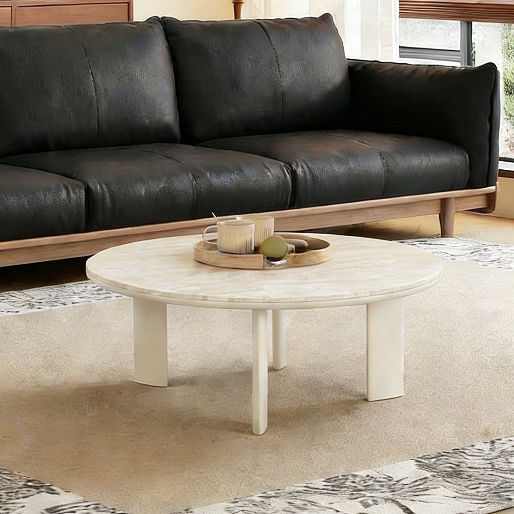 The Amora Round Coffee Table Set features smooth round tabletops crafted from durable sintered stone, delivering a refined stone look with excellent heat, scratch, and stain resistance—perfect for everyday living.