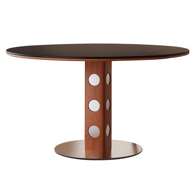 Blending French vintage charm with a modern touch, this dining table brings elegance and warmth to any space. The smooth rounded edges make it especially ideal for smaller rooms, while the solid wood legs and stainless steel base add both style and sturdy support. A perfect mix of design and durability.