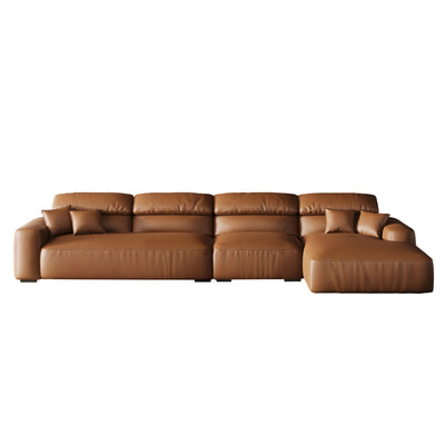 This sectional exceeded my expectations in every way. The leather is soft yet durable, and the chestnut khaki color is stunning. It fits perfectly in my space and provides ample seating for my family. The double chaise feature is a game-changer for movie nights. Plus, the delivery was prompt, and the sectional arrived well-packed. Couldn't be happier with my purchase!
