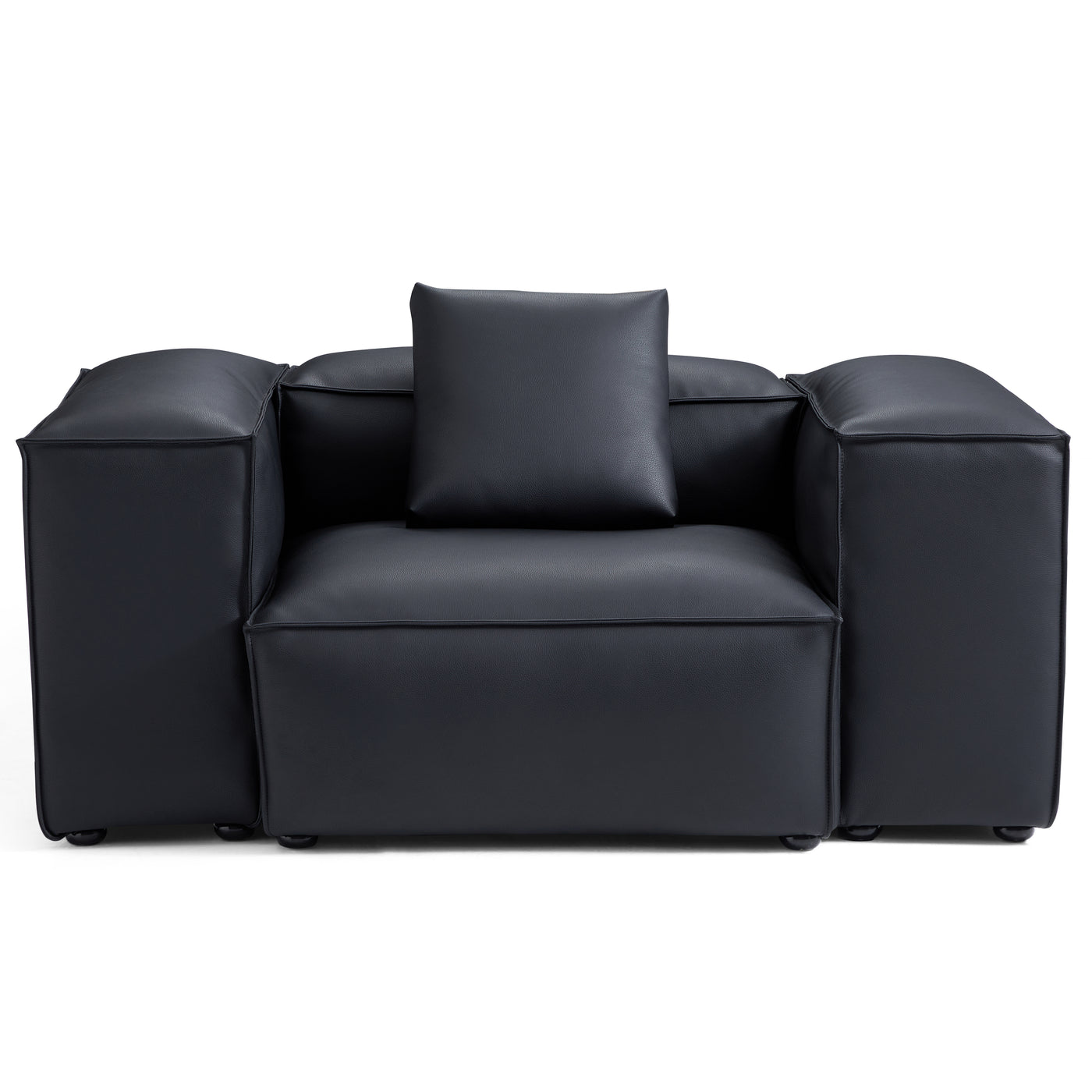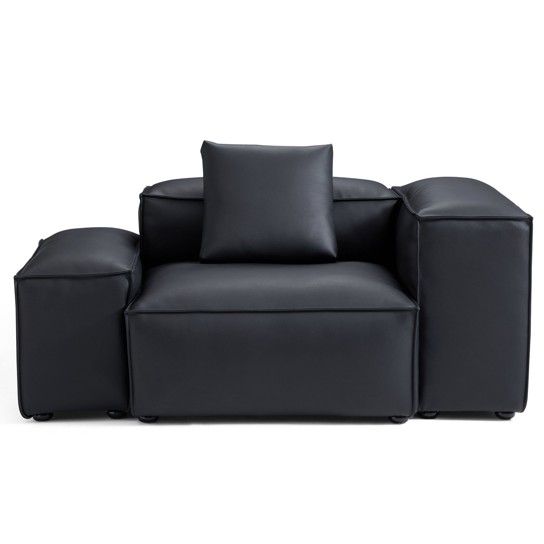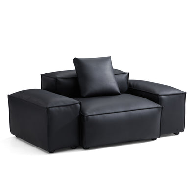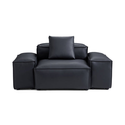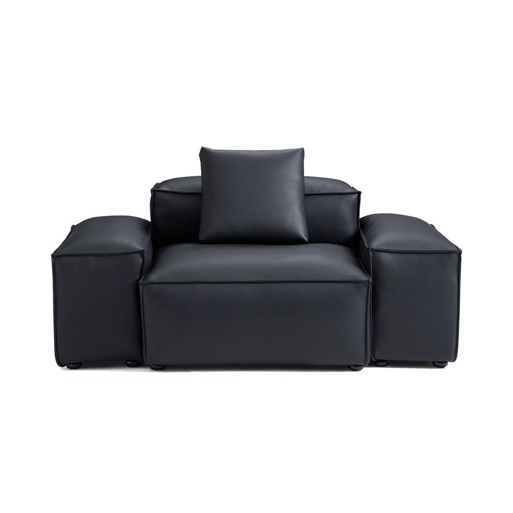 Cube Modular Black Genuine Leather Armchair-Black