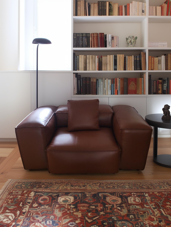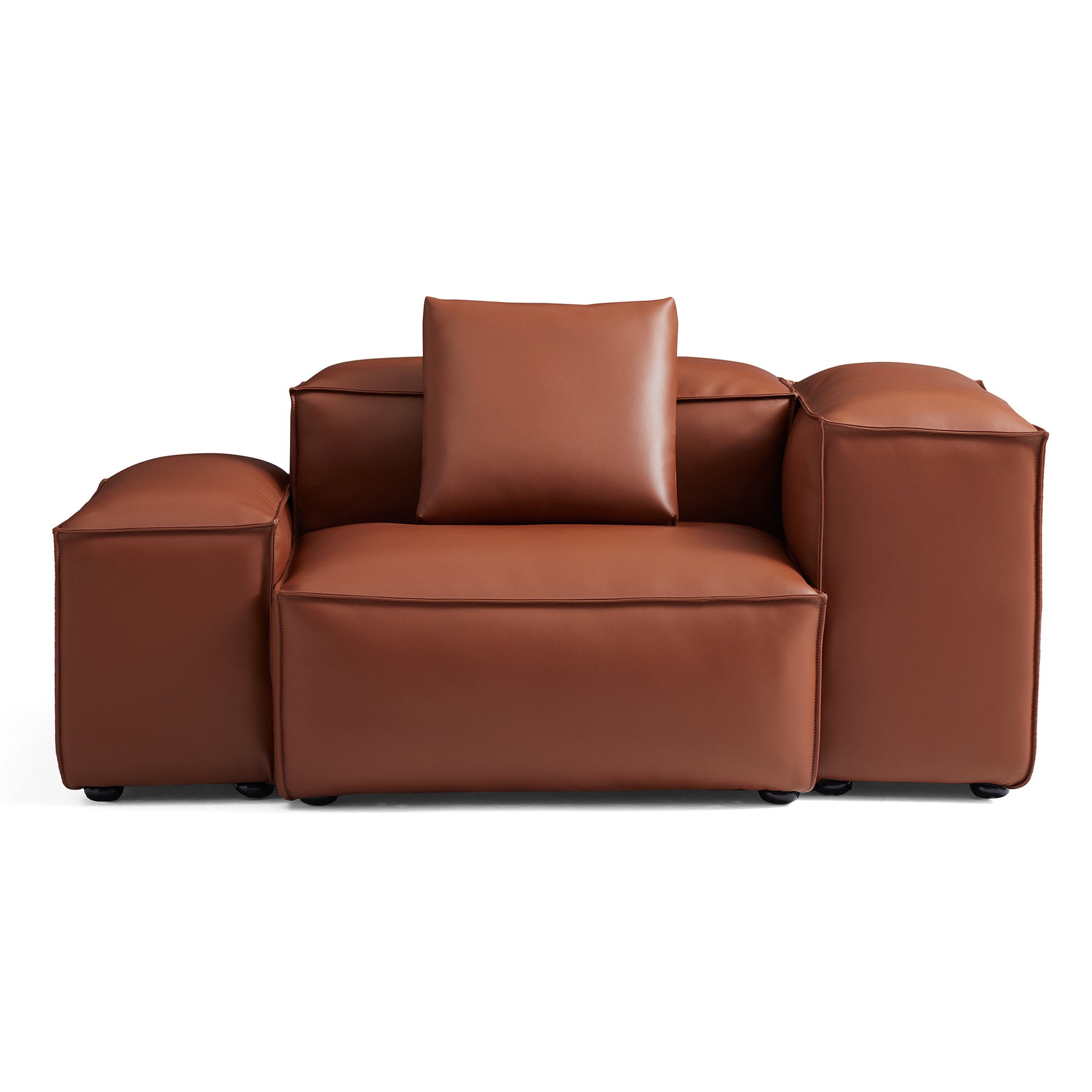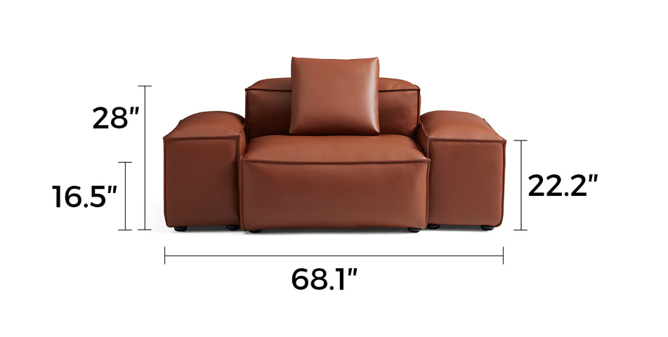 Cube Modular Brown Genuine Leather Armchair-Brown-68.1"-Low & High