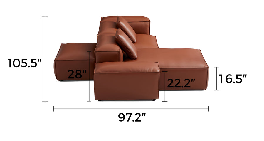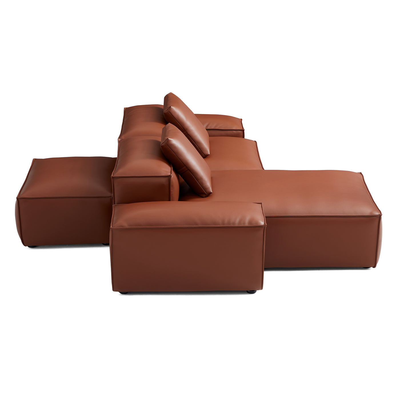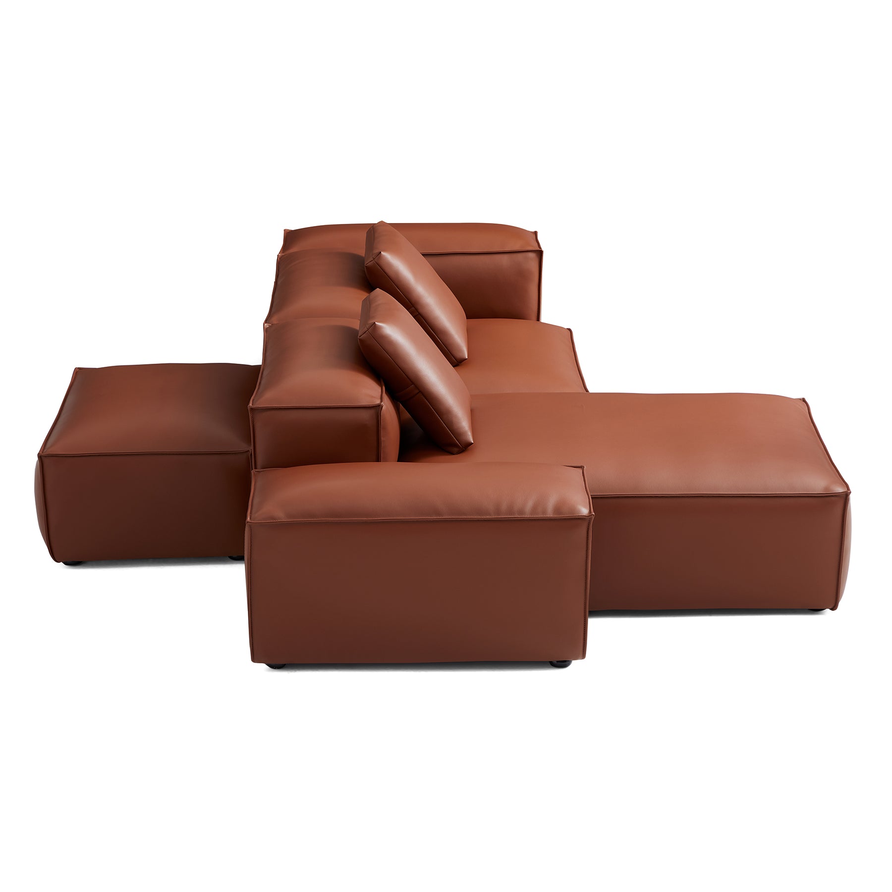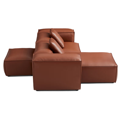 Cube Modular Brown Genuine Leather Sofa with Ottoman-Brown