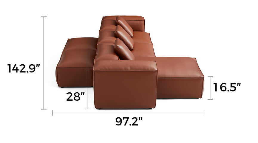 Cube Modular Brown Genuine Leather Double Sided Sectional-Brown-142.9"-Low