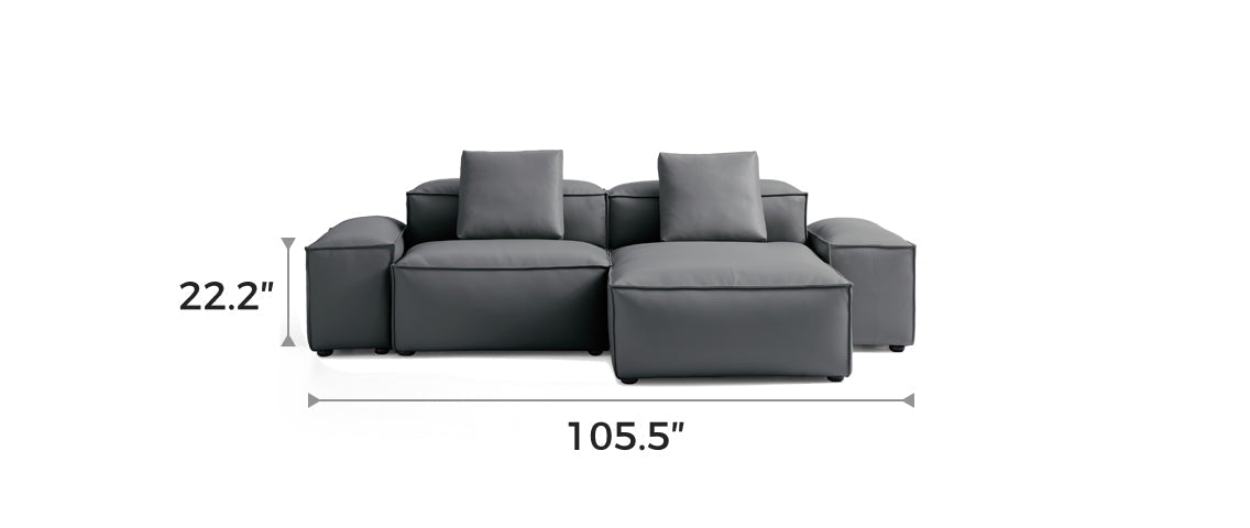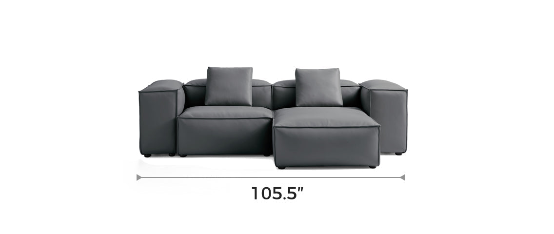Flex Modular Black Genuine Leather Double Sided Sectional-Dark Gray-105.5"-Low & High