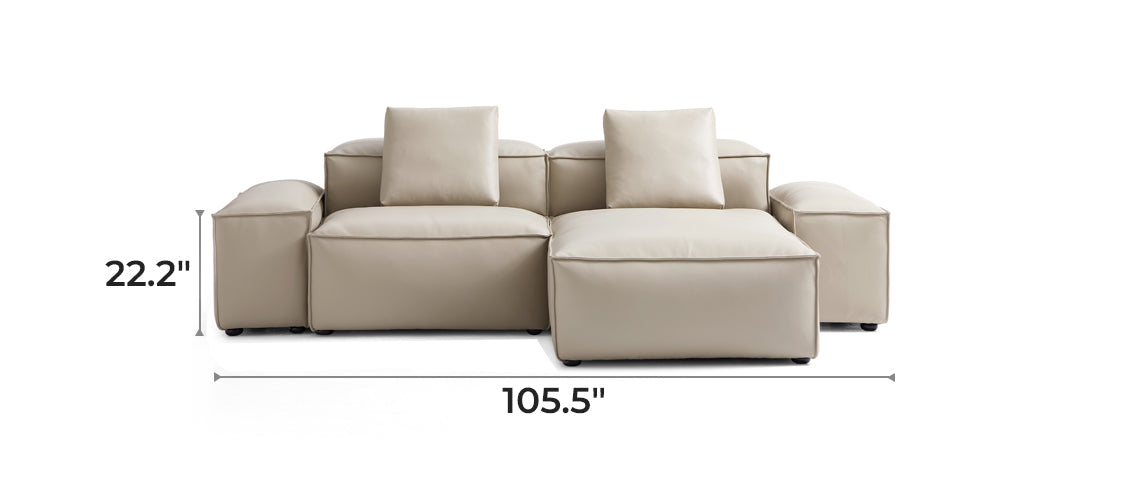 Flex Modular Black Genuine Leather Double Sided Sectional-Beige-105.5"-Low