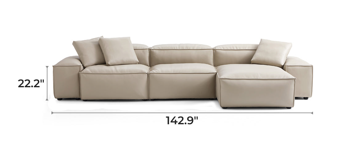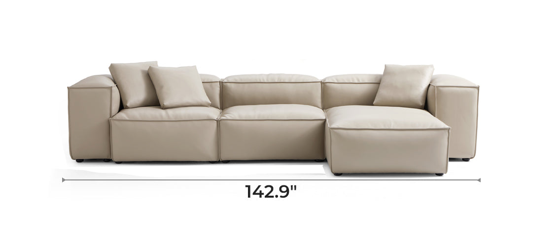 Flex Modular Black Genuine Leather Double Sided Sectional-Beige-142.9"-Low & High