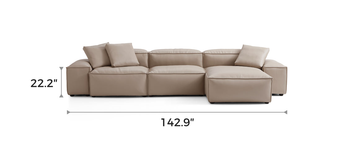Flex Modular Black Genuine Leather Double Sided Sectional-Beige-142.9"-Low