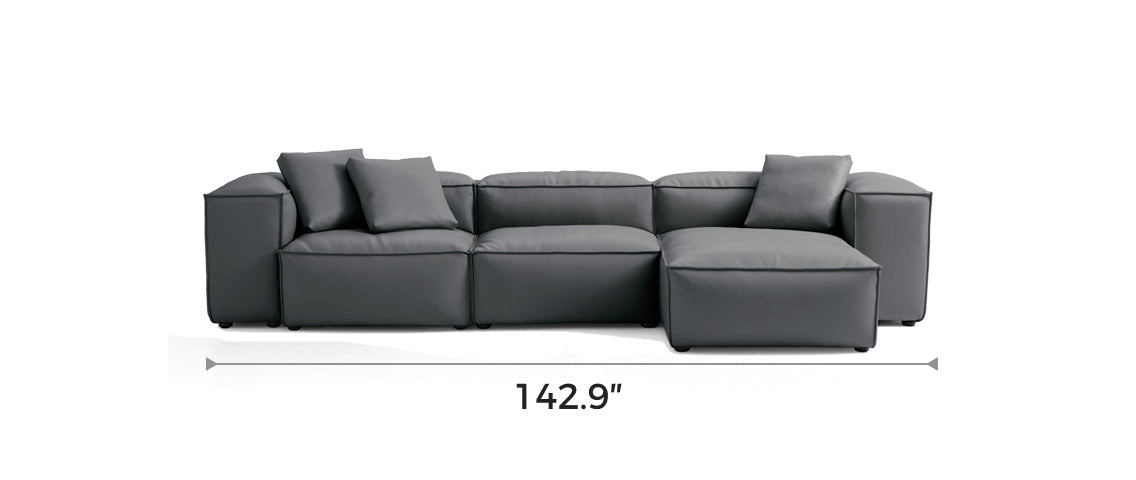 Flex Modular Black Genuine Leather Double Sided Sectional-Dark Gray-142.9"-Low