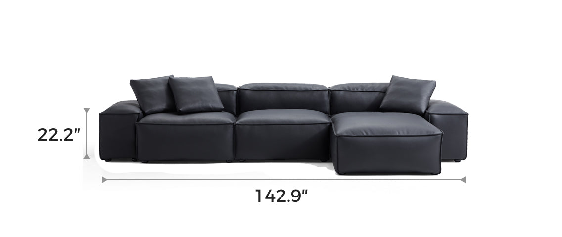 Cube Modular Black Genuine Leather Double Chaise Sectional