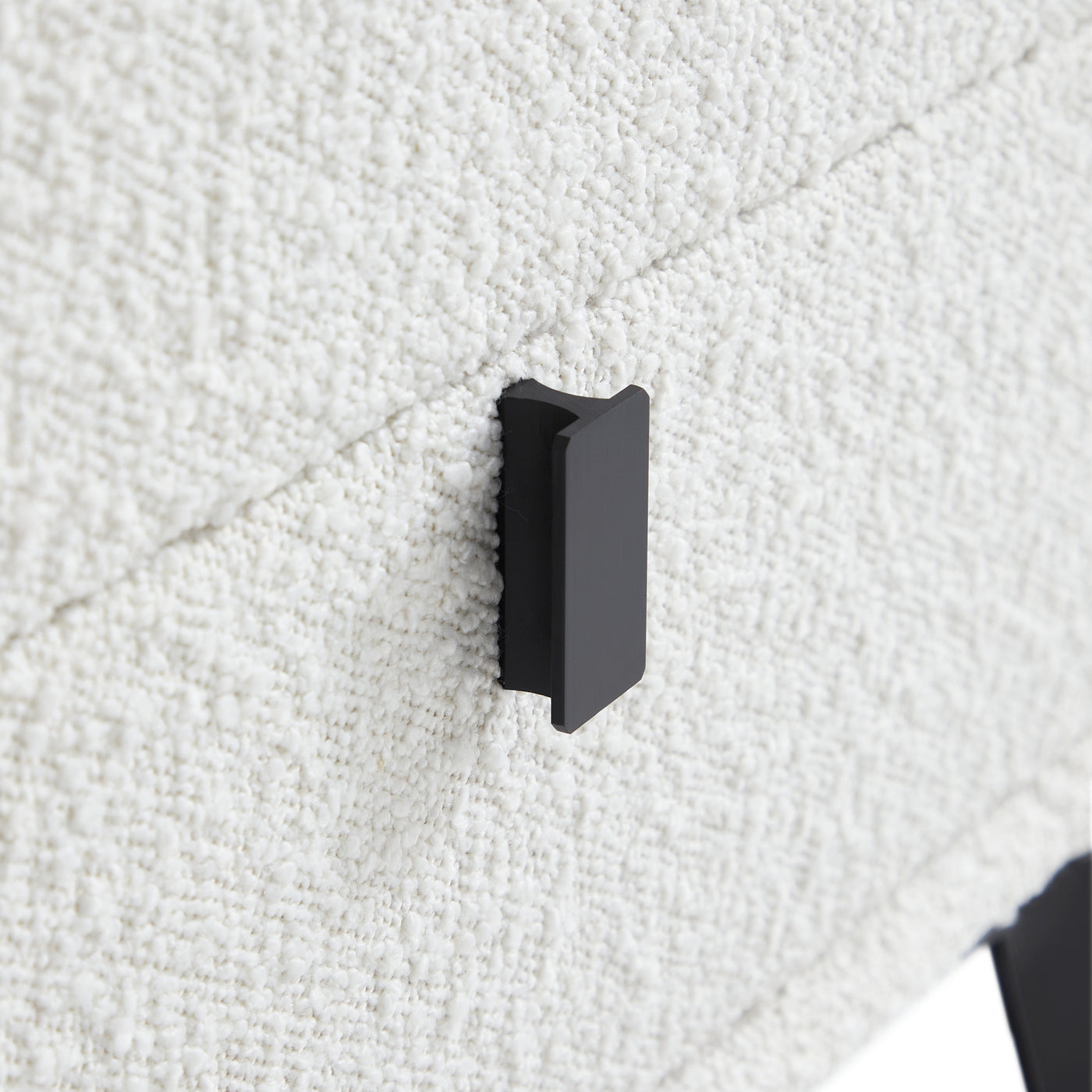 Cushy nightstand features a small yet thoughtfully crafted handle with a matte black finish. Its clean lines and compact form add a subtle touch of sophistication—perfect for those who appreciate the beauty of simple, modern design.