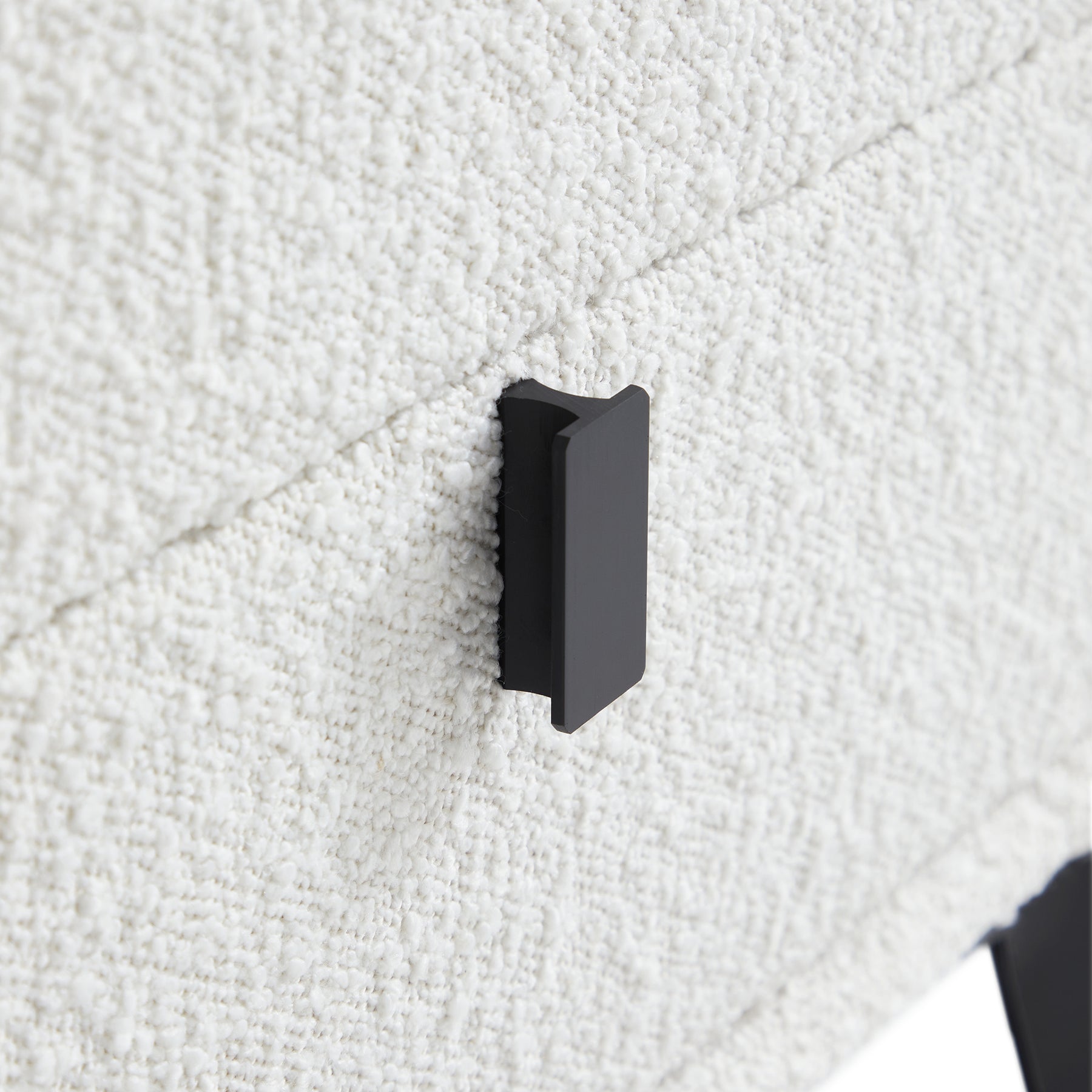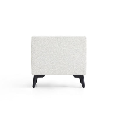 This minimalist nightstand features smooth, flowing lines and soft boucle fabric, creating a cozy, elegant vibe. The generous surface area is perfect for displaying decor and storing everyday essentials, offering both style and functionality for your bedroom.