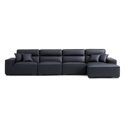 Domus High Back Modular Leather Sectional-Black-160.6"-Facing Right
