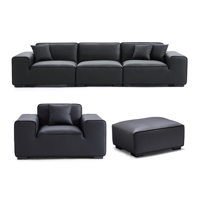 Domus Modular Black Leather Sofa Set