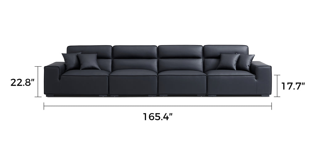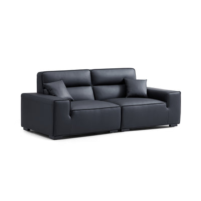 Elevate your living space with the Domus genuine leather sofa, crafted with premium top-grain leather in a sleek black finish. Featuring a high-back design and inspired by Italian minimalism, this sofa combines timeless elegance with exceptional comfort. Perfect for modern living rooms, it offers both style and durability, making it a standout centerpiece for your home.
