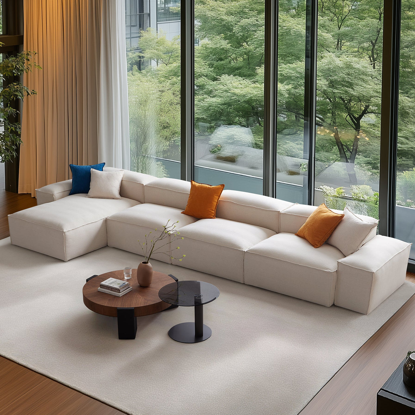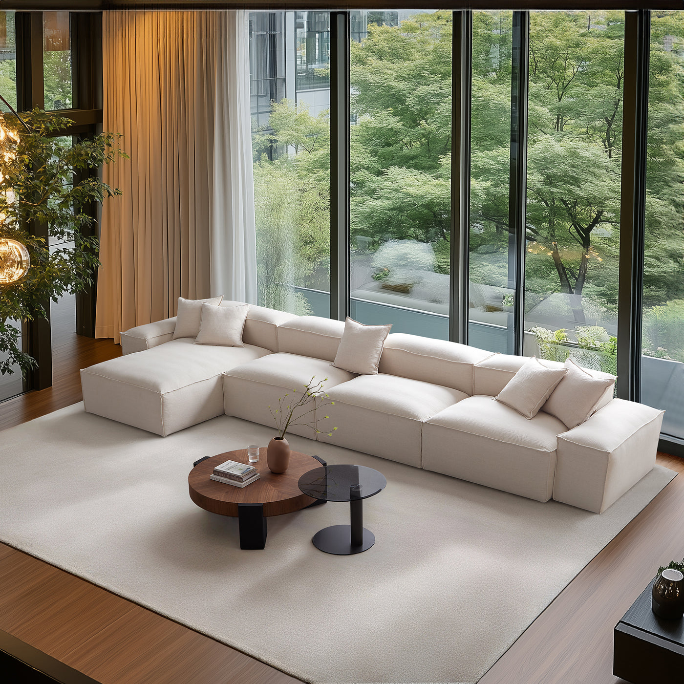 This sectional is perfect for our large living space. The khaki color is neutral and blends well with our other furniture. The modular pieces are easy to rearrange, providing flexibility for different layouts. The cushions are firm yet comfortable, making it a great spot for relaxing or entertaining guests.