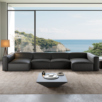 Luxury Minimalist Leather Black U-Shaped Sectional Sofa