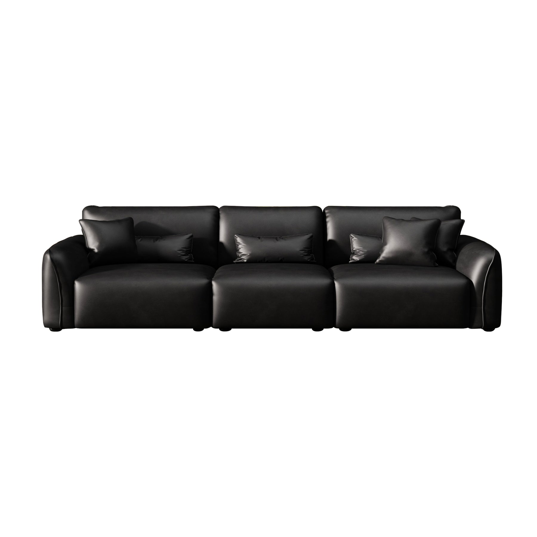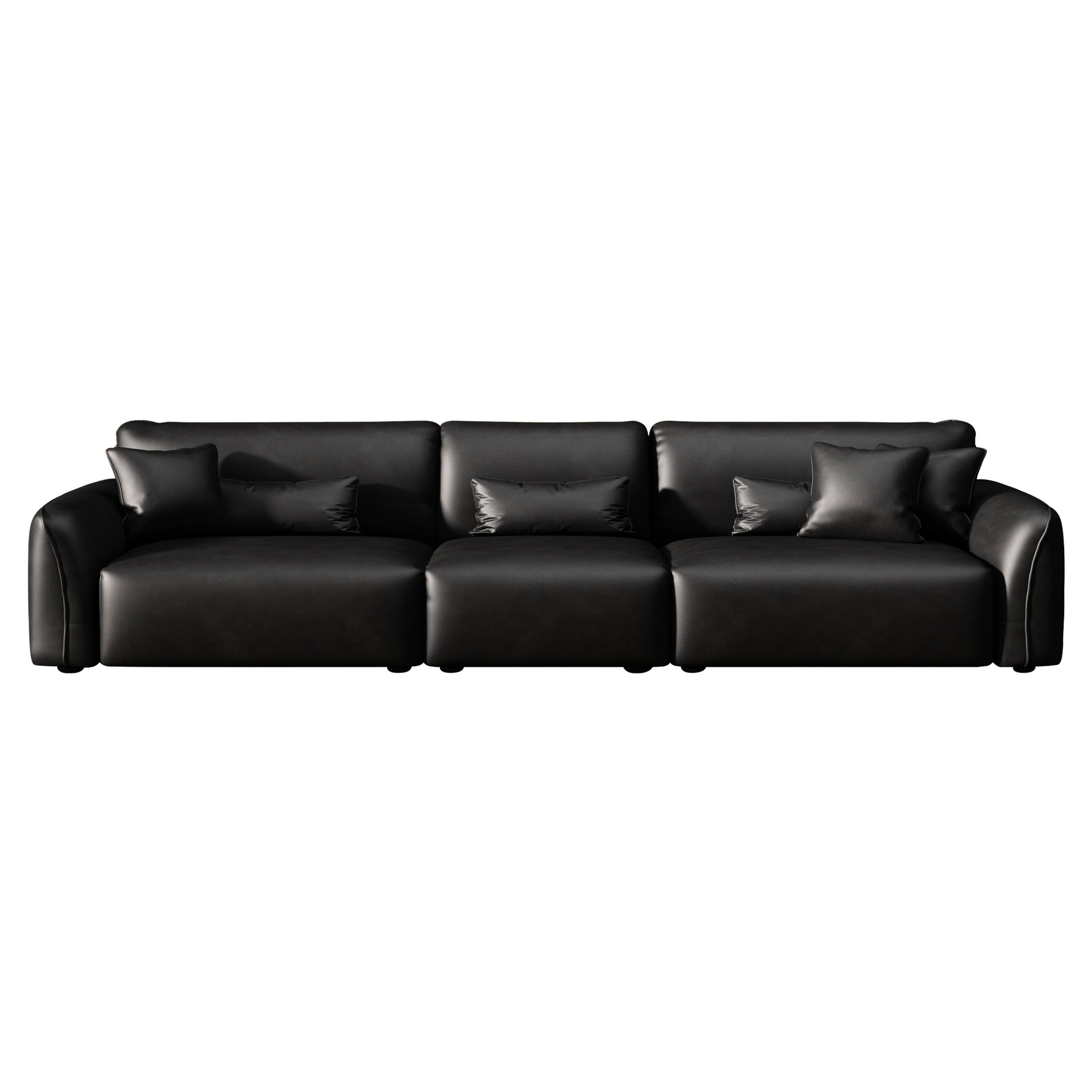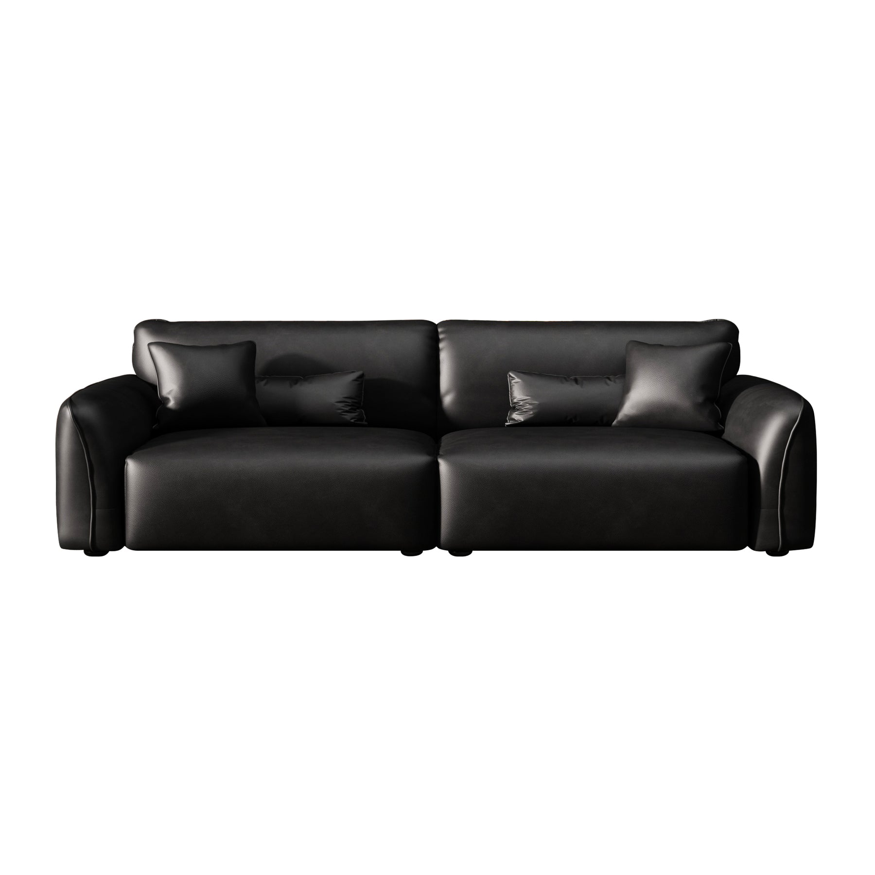 With its clean lines, wide track arms, and low-profile silhouette, this minimalist leather sofa delivers effortless elegance. Deep, plush seat cushions provide supportive comfort for everyday lounging and entertaining.