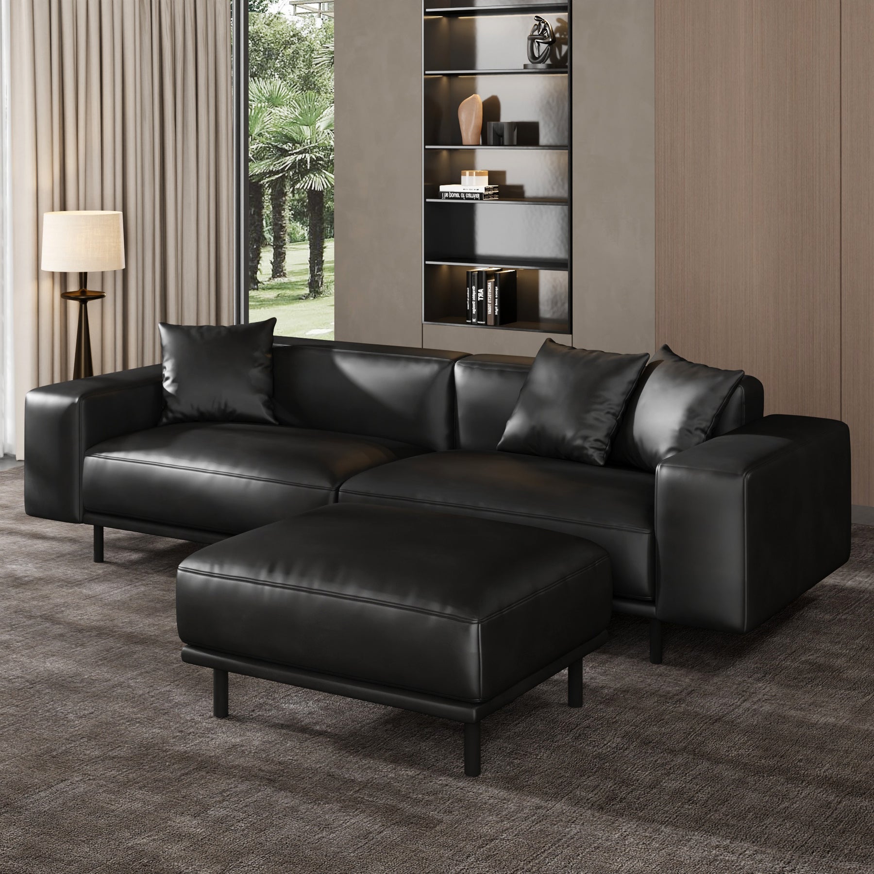 The Noble Leather Sofa is a modern vegan leather sofa designed for everyday comfort and lasting style. Featuring feather and foam–filled cushions, deep seating, and a sleek contemporary silhouette, it delivers the look of luxury leather with a softer, more sustainable touch. Ideal for modern living rooms, apartments, and open-concept spaces.