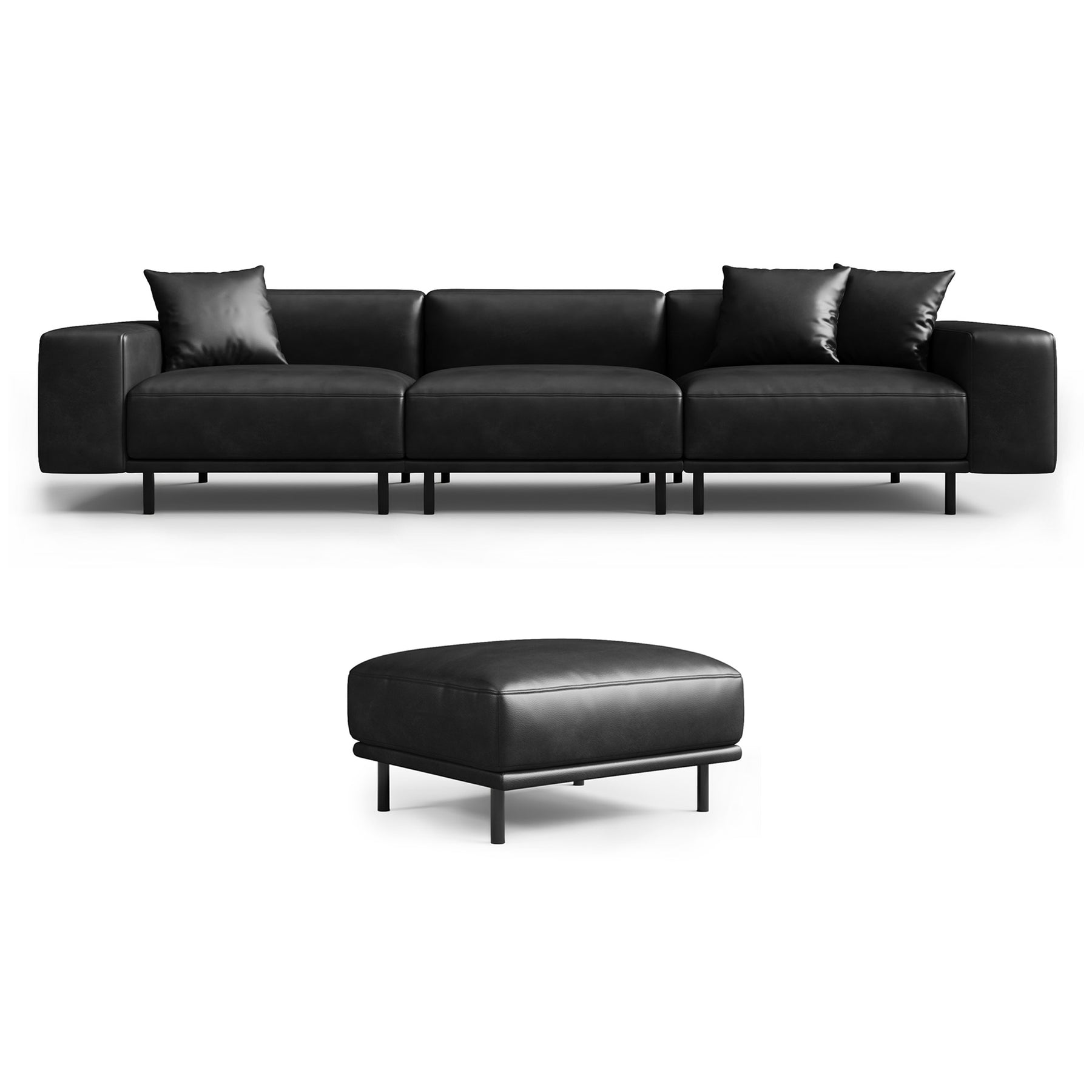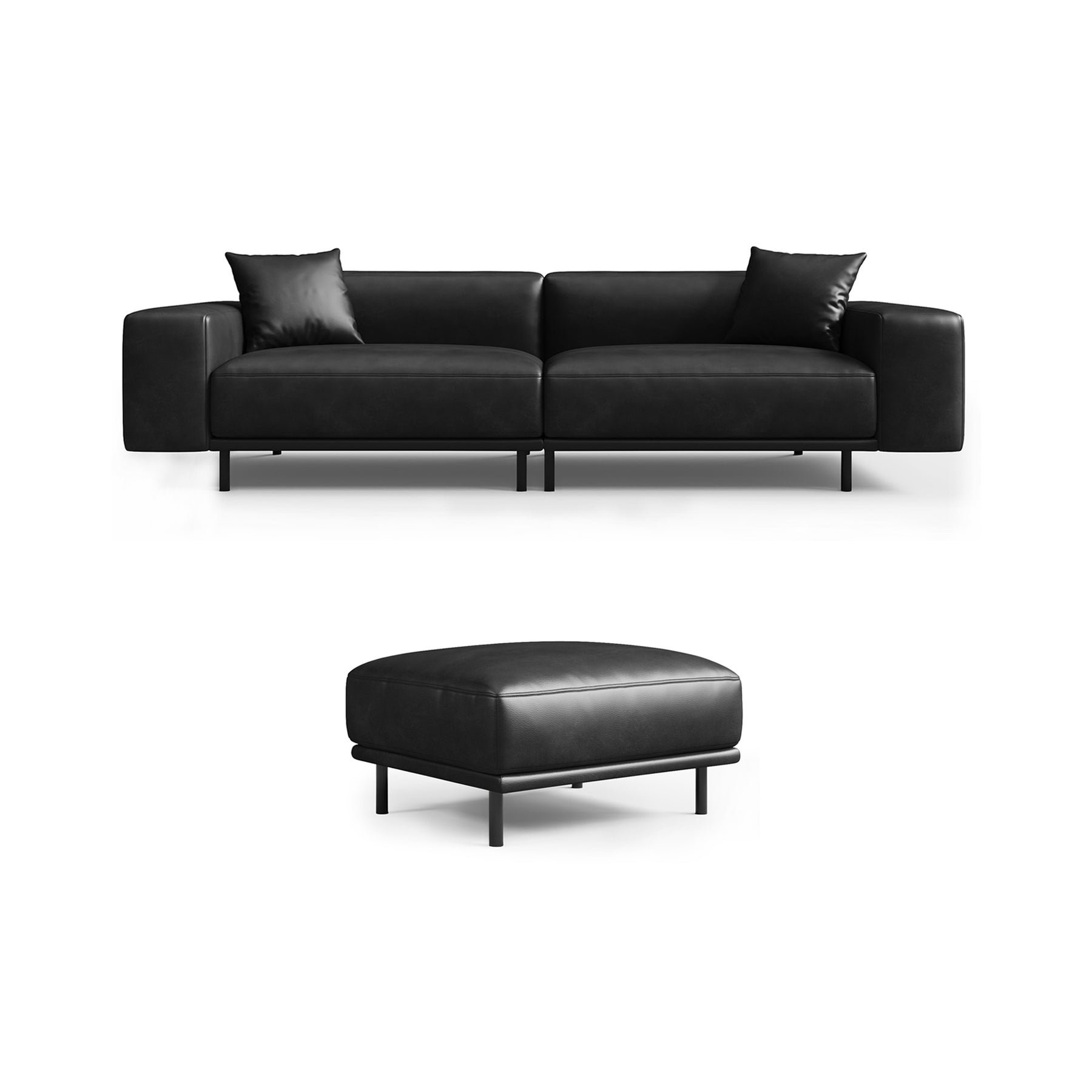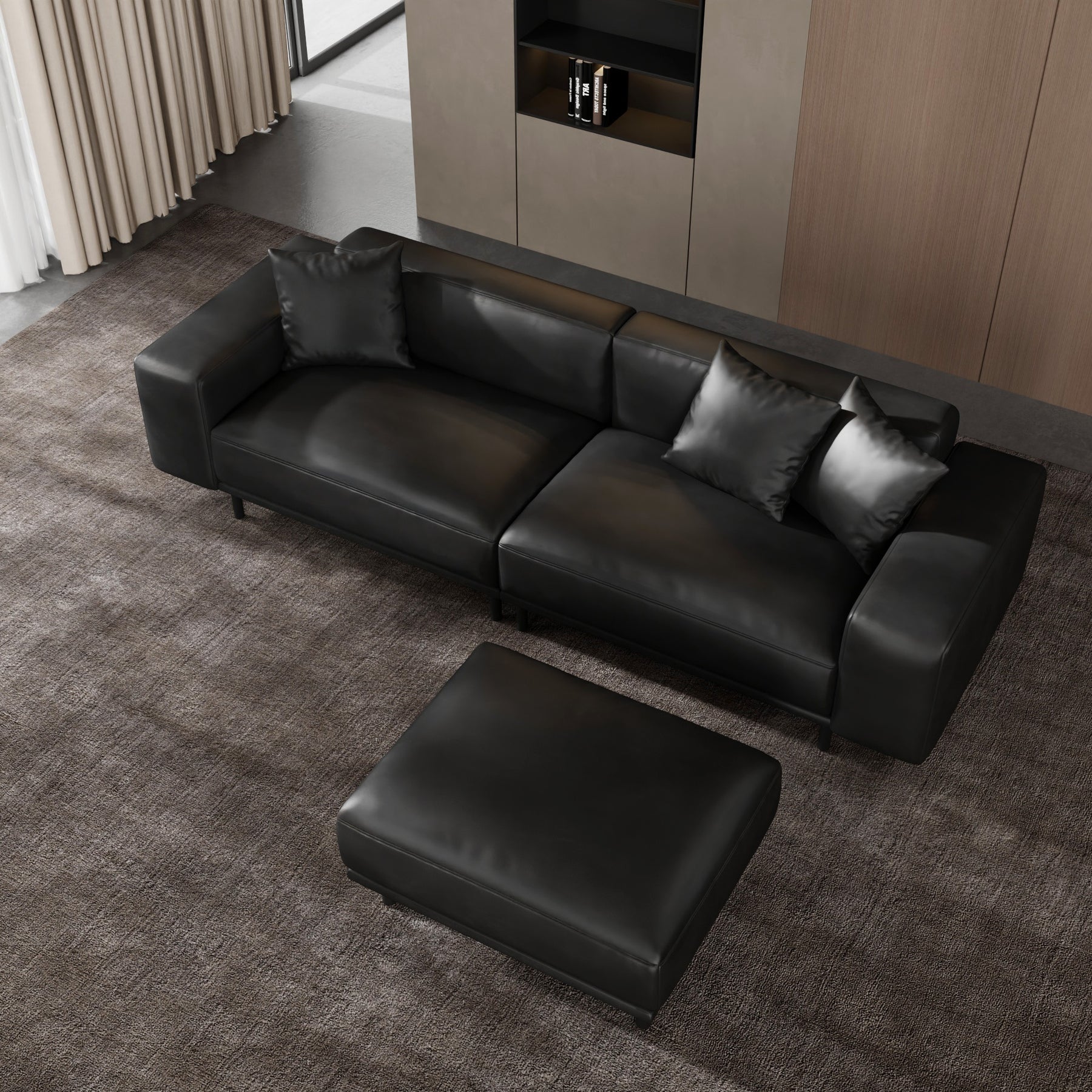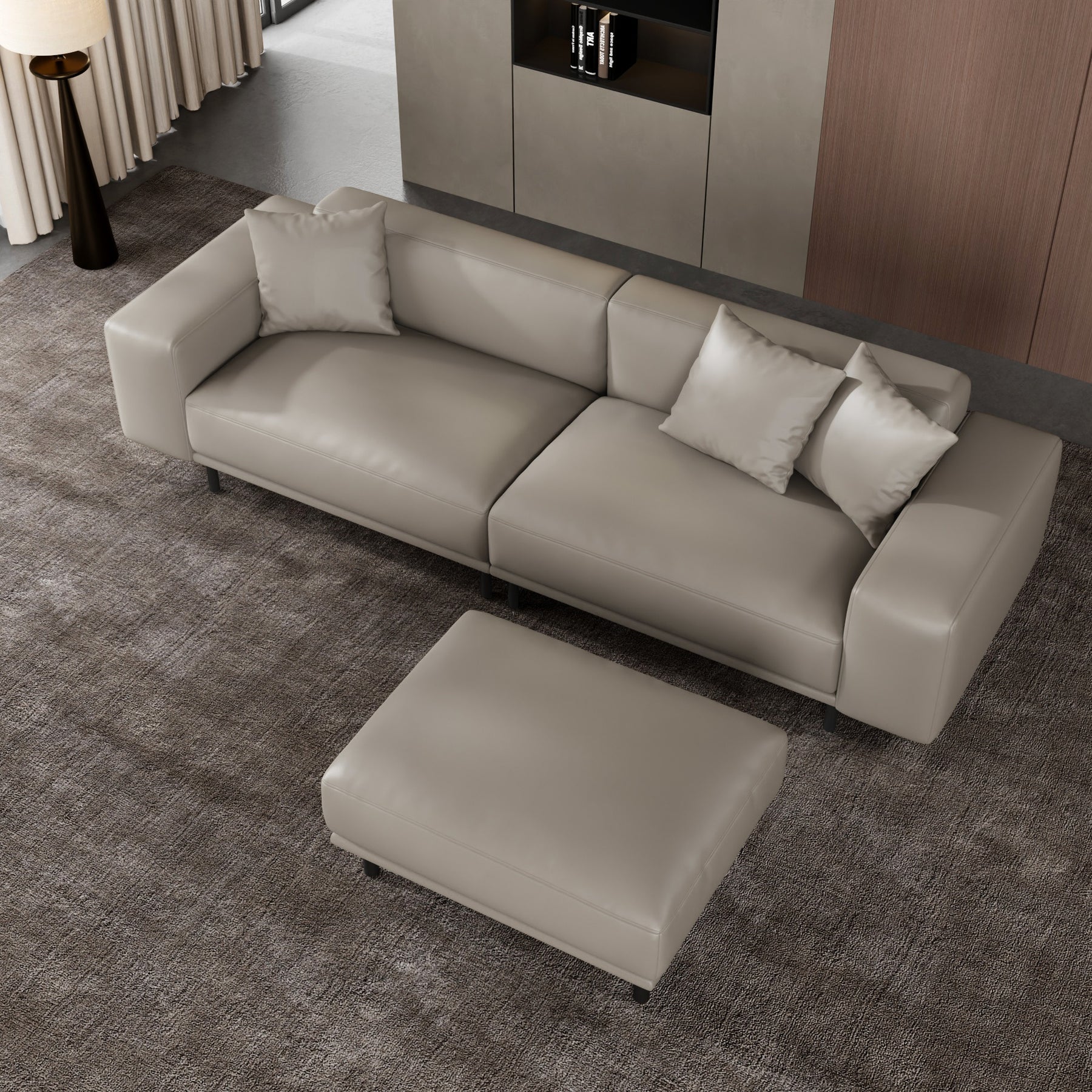 The Noble Leather Sofa features generously sized, box-style armrests designed for both comfort and visual balance. Firmly cushioned and perfectly proportioned, they provide comfortable support for resting arms, lounging, or even sitting casually—while reinforcing the sofa's modern, architectural look.