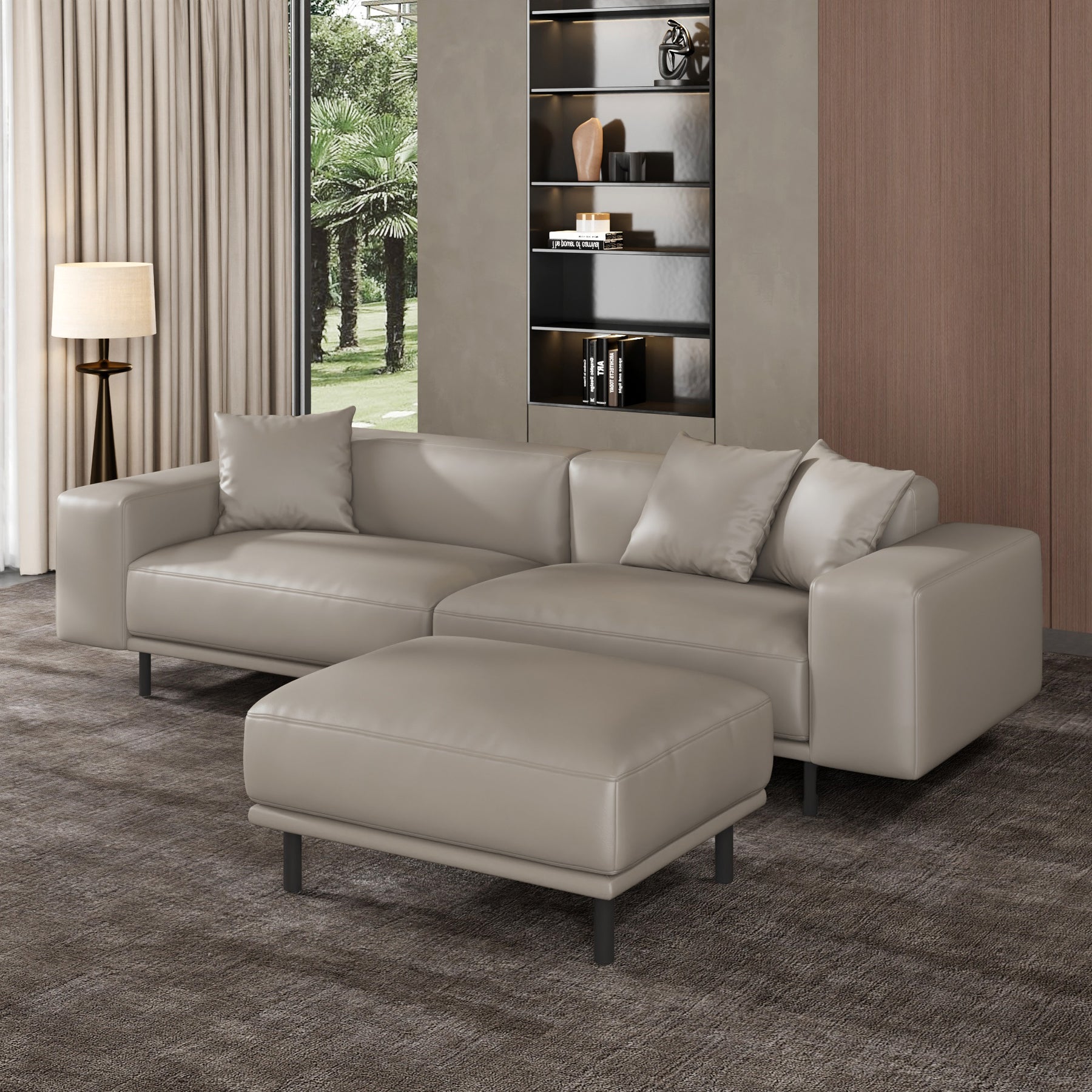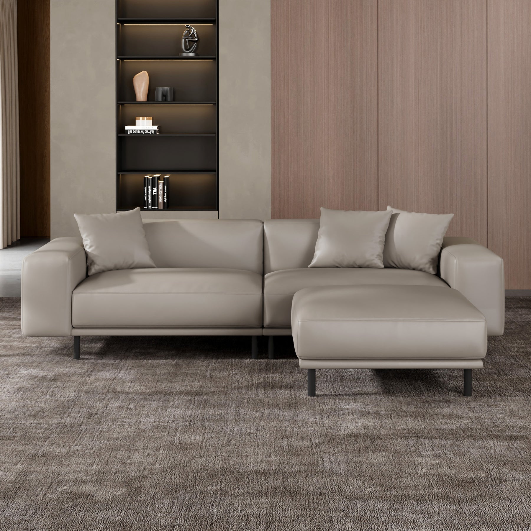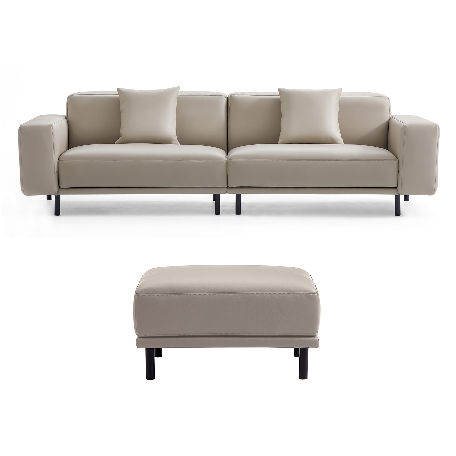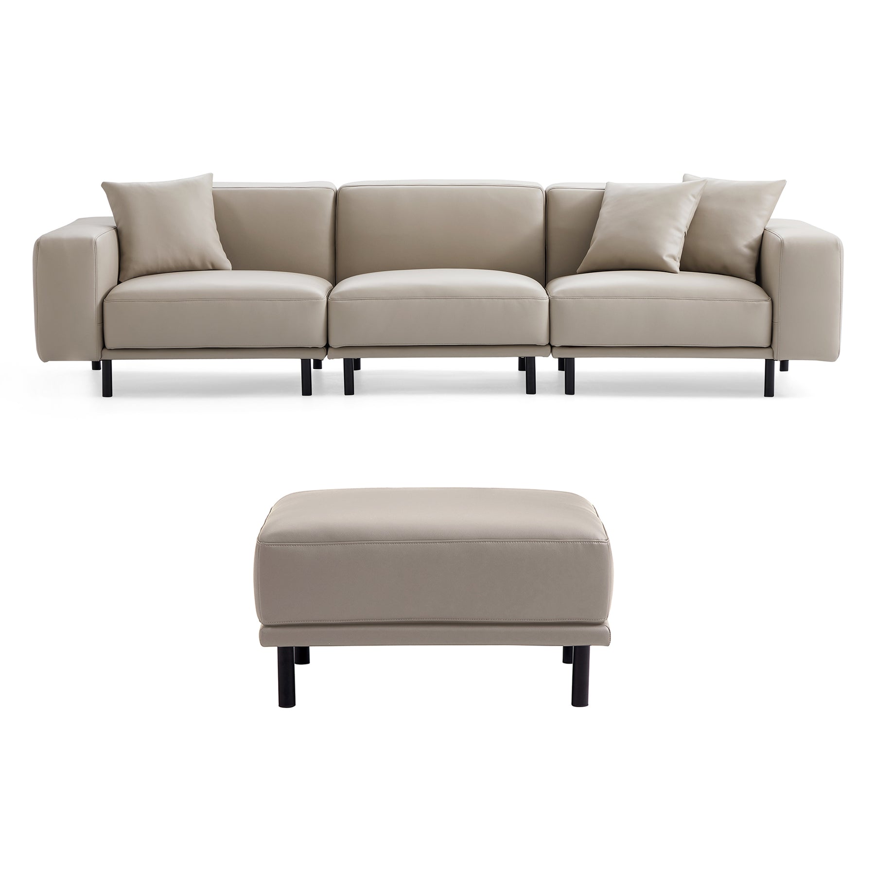 The Noble Leather Sofa features generously sized, box-style armrests designed for both comfort and visual balance. Firmly cushioned and perfectly proportioned, they provide comfortable support for resting arms, lounging, or even sitting casually—while reinforcing the sofa's modern, architectural look.