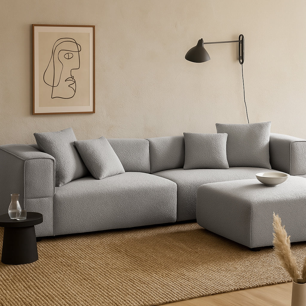 The modern gray color fits perfectly in my living room. The cushions are soft yet supportive, and the ottoman adds extra comfort.